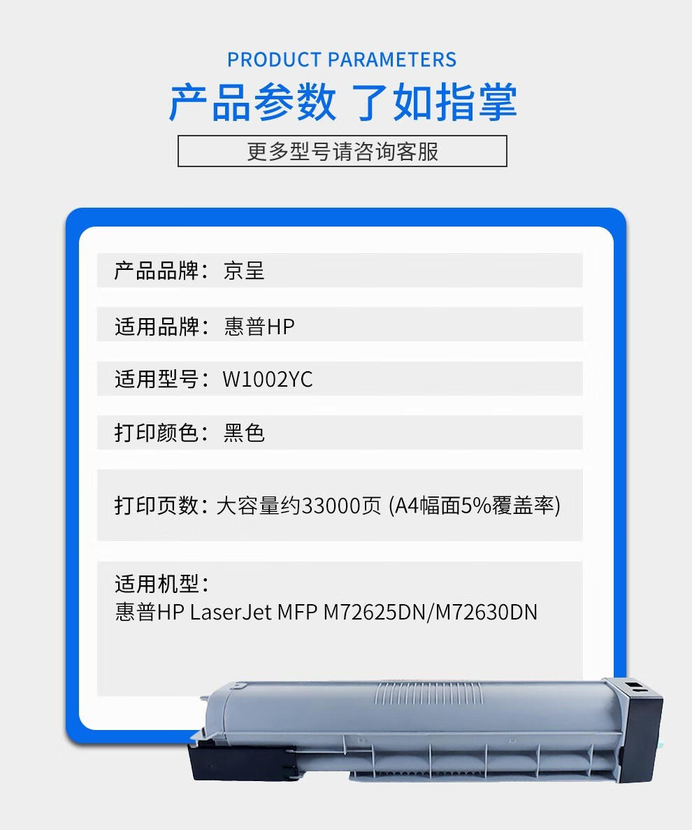 京呈W1002YC适用惠普HP LaserJet MFP M72625dn M72630dn硒鼓粉盒/支 W1002YC粉盒 33000页
