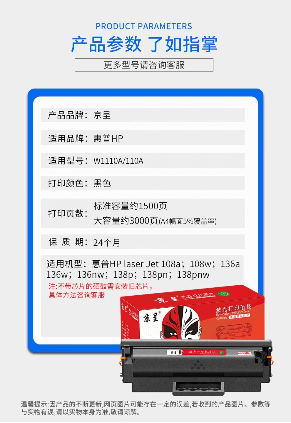 京呈136w硒鼓110a适用惠普w1110a 108a/w136wm/w/nw/a 138pnw硒鼓 110A黑色硒鼓(带芯片)3000页