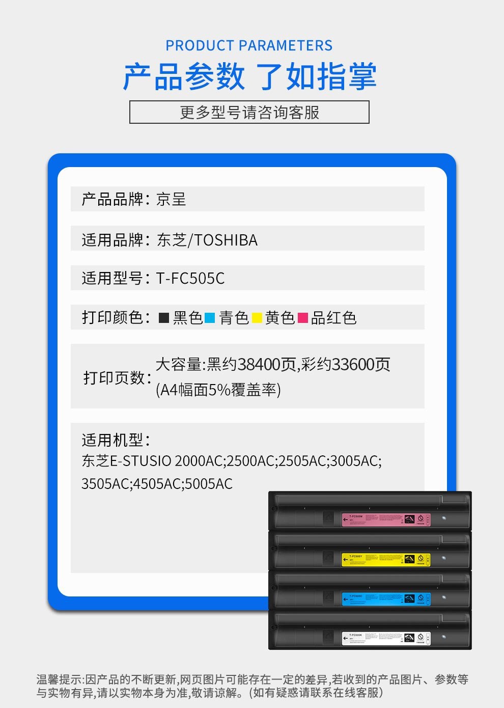 京呈适用东芝T-FC505C硒鼓2000AC粉盒2500AC墨粉3505AC3005墨盒2505AC/支 T-FC505C黑色大容量粉盒