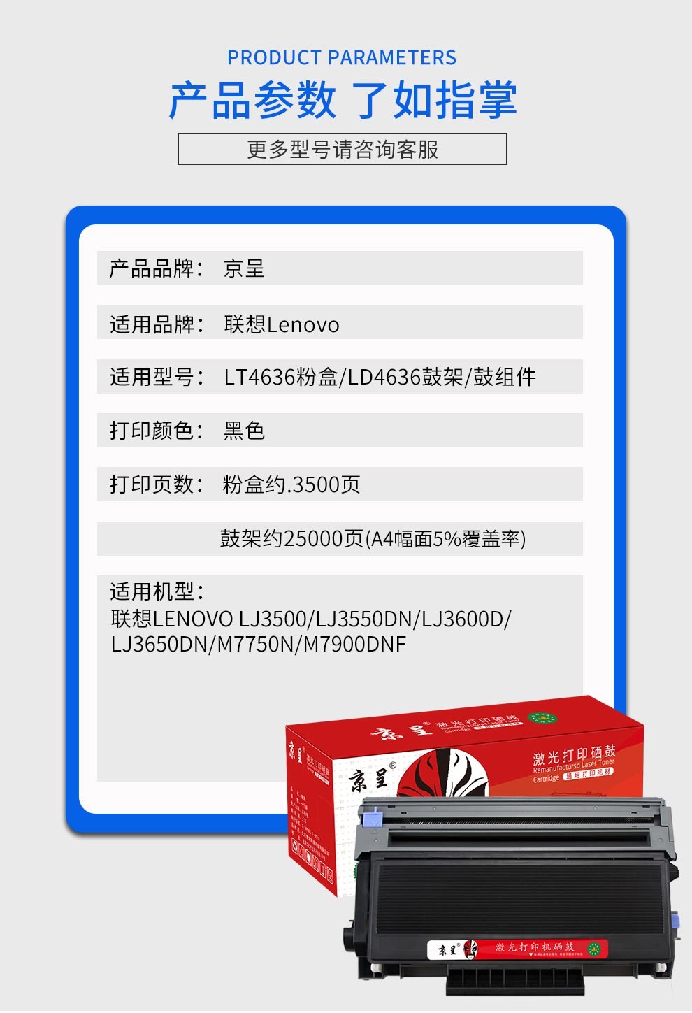 京呈LT4636粉盒适联想LJ3600D墨粉LJ3650DN墨盒M7900DNF碳粉LJ3600DN/支 LT4636 易加粉粉盒 3500页