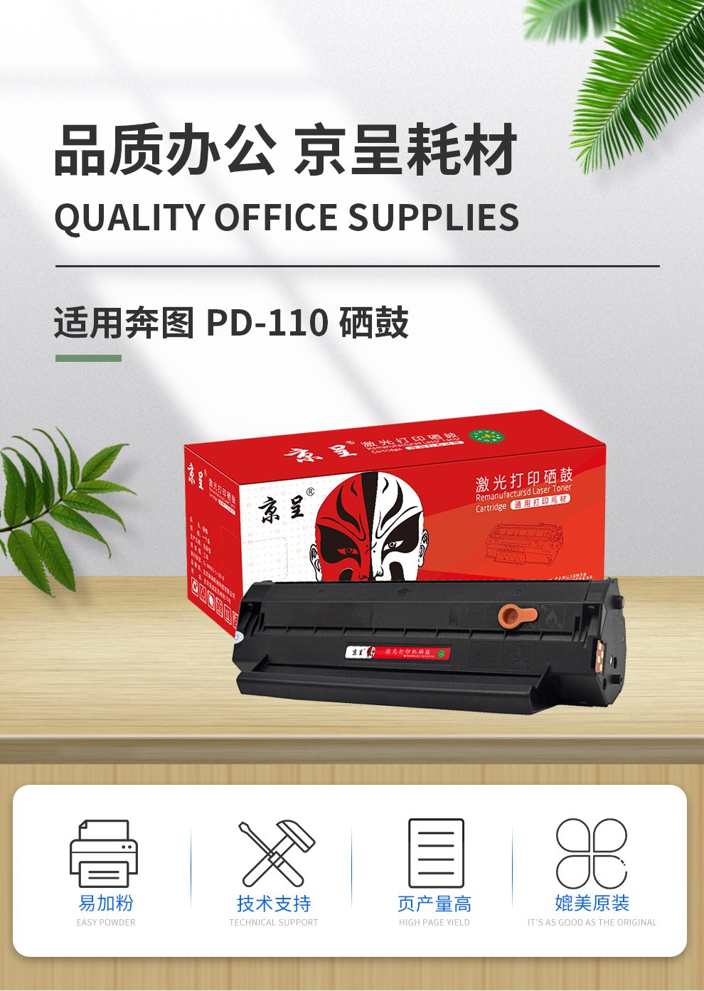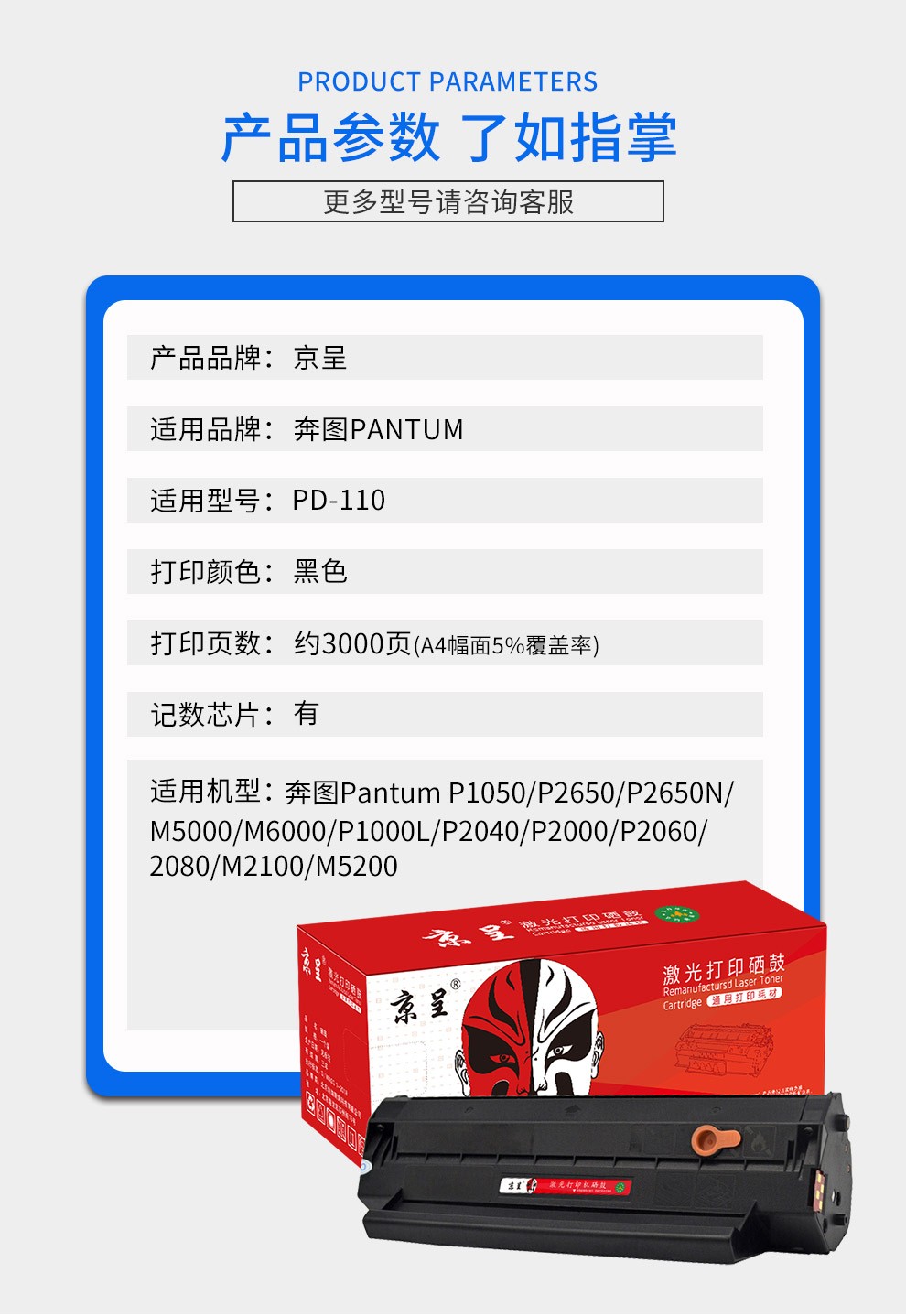 京呈PD-110硒鼓适用奔图M6000 5000 M5200 M2100 P1050 P2650N 【3000页】PD110 易加粉硒鼓 |