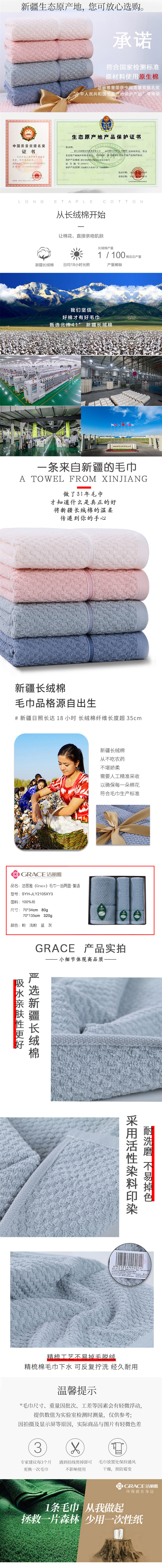 洁丽雅Grace 絮语一浴两面装 毛巾浴巾 SYH-JLY2105XY3(单位:套) 絮语一浴两面装 组合装