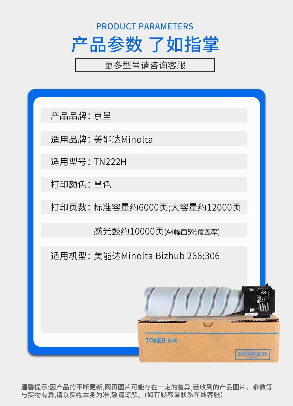京呈适用柯尼卡美能达Bizhub 226墨粉246粉盒266碳粉美能达306墨粉筒柯美206 236 【24000页】TN-222H大容量2支