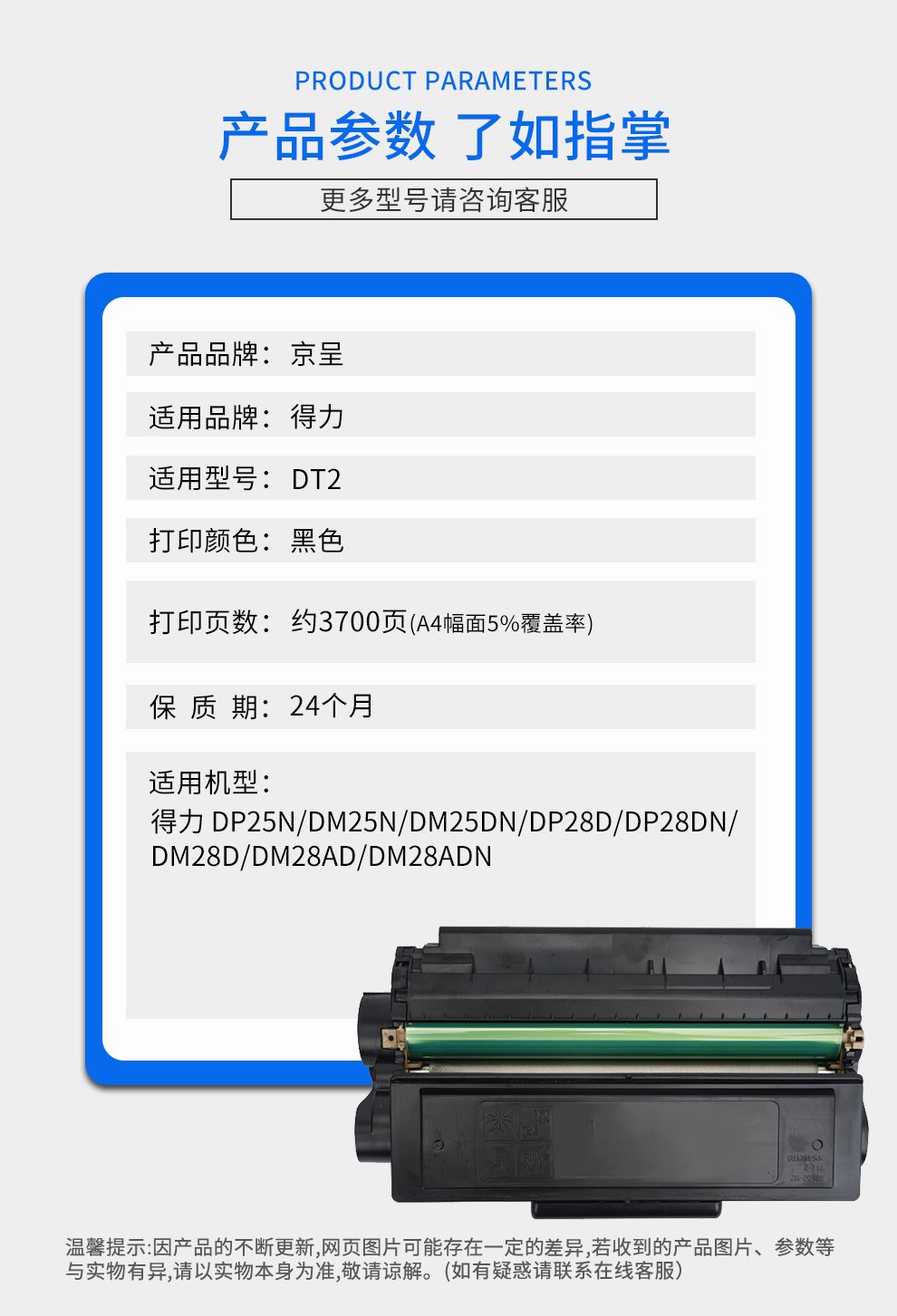 京呈DT2硒鼓适用得力DP25N DM25N/DN打印机DP28D/28DN墨盒DM28ADN碳粉/支 DT2硒鼓 3700页