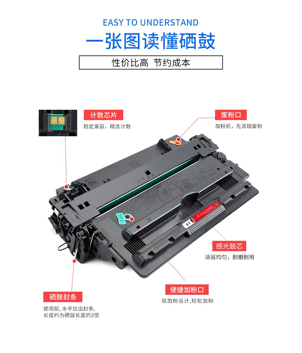 京呈适用惠普M725dn硒鼓14X墨粉M712dn碳粉盒hp700 MFP打印机CF214A墨盒粉盒/支 黑色