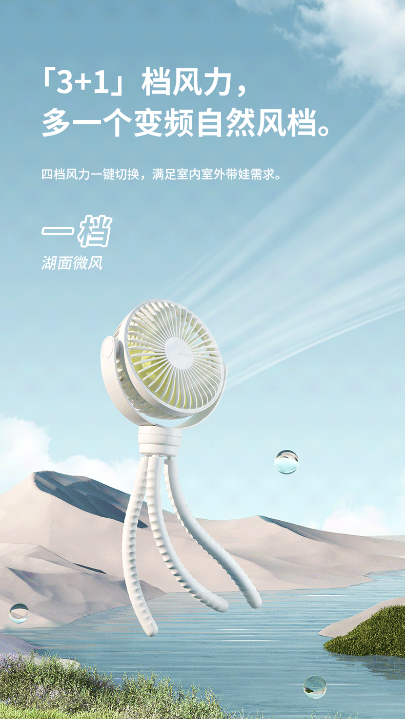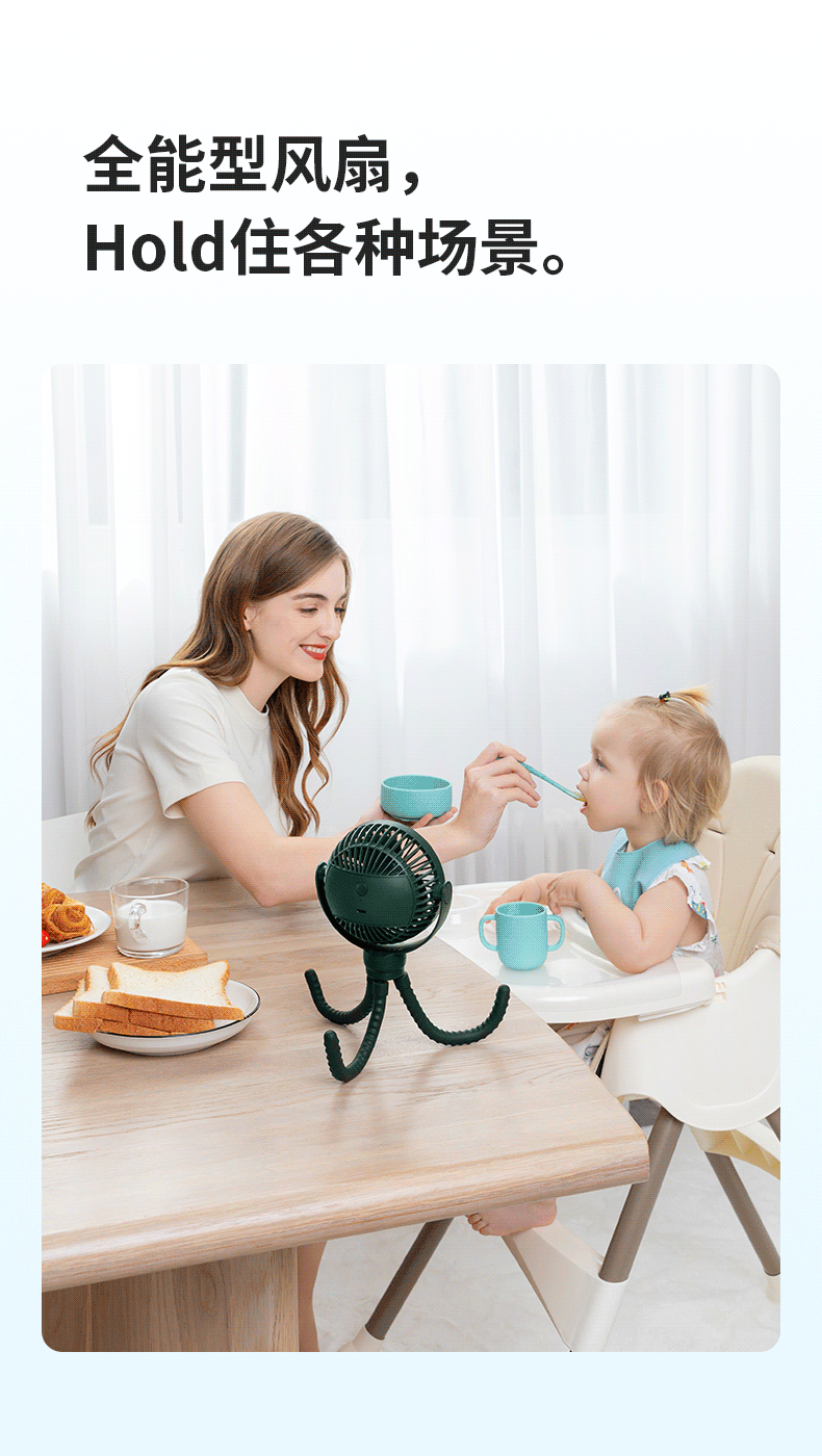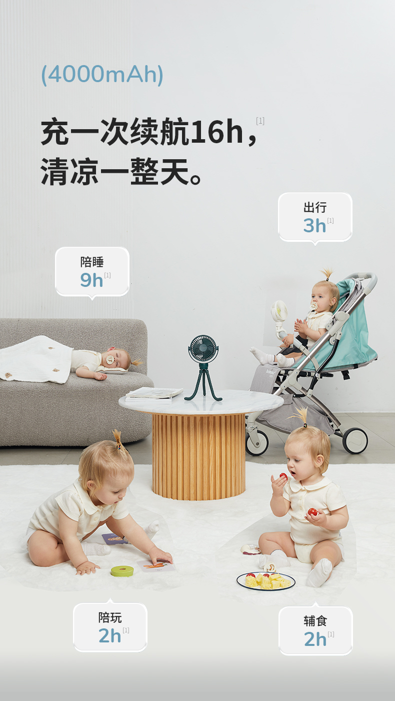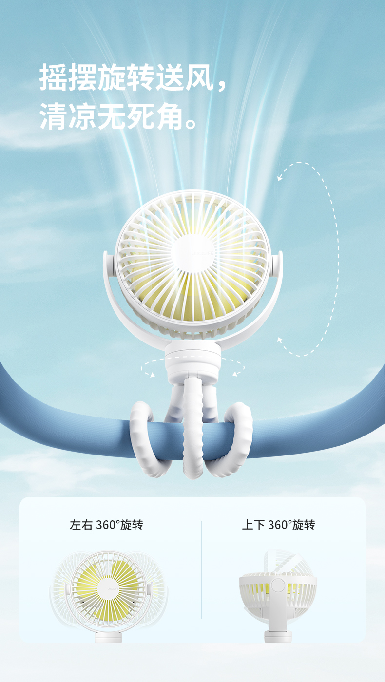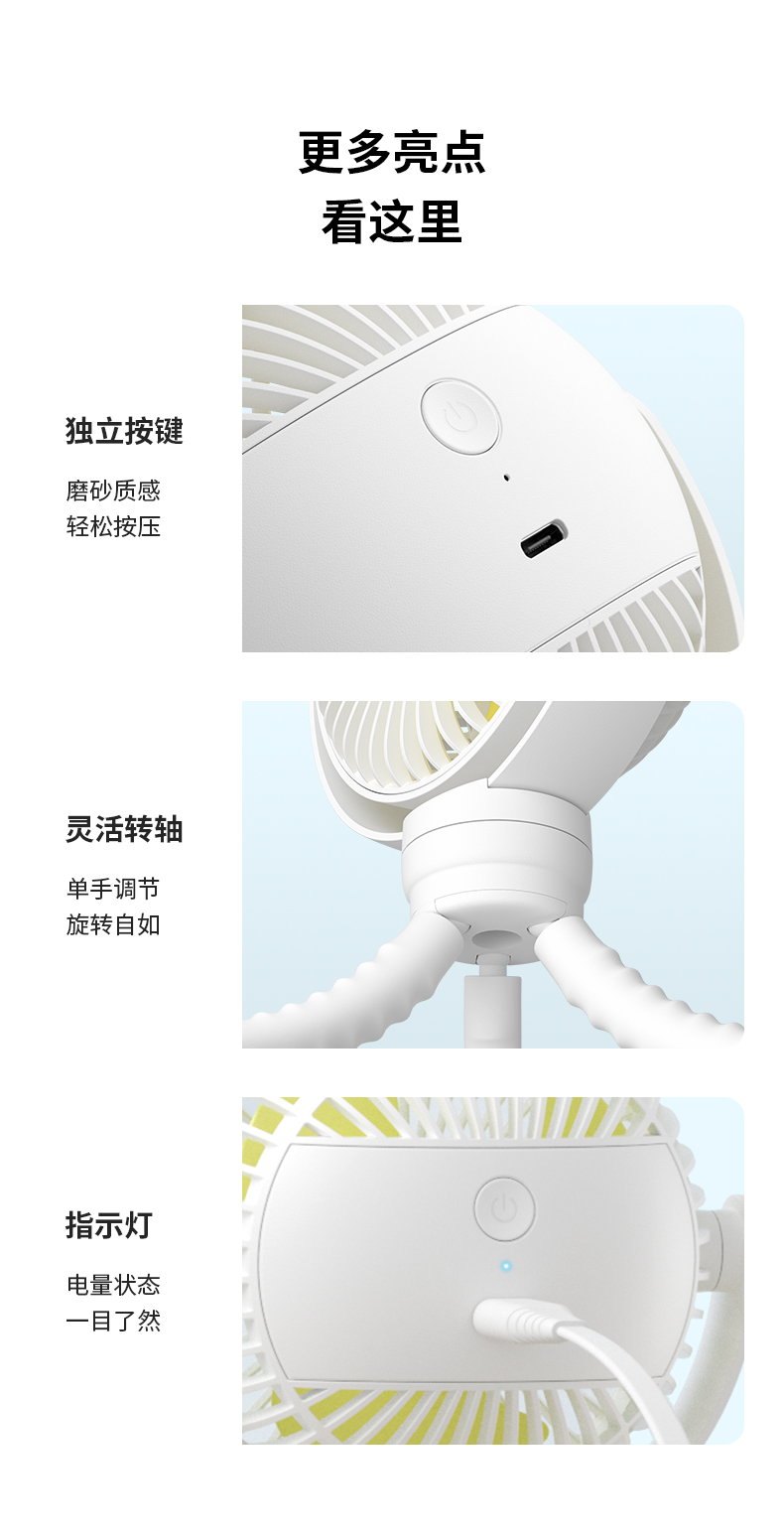 几素(JISULIFE)迷你手持小风扇桌面风扇婴儿风扇 可缠绕4000mAh USB充电款 FA24(单位:个) 绿色