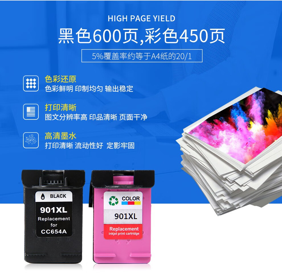 京呈适惠普hp901墨盒HP4500墨盒J4660 j4580 J4640 J4660打印机墨盒 彩色