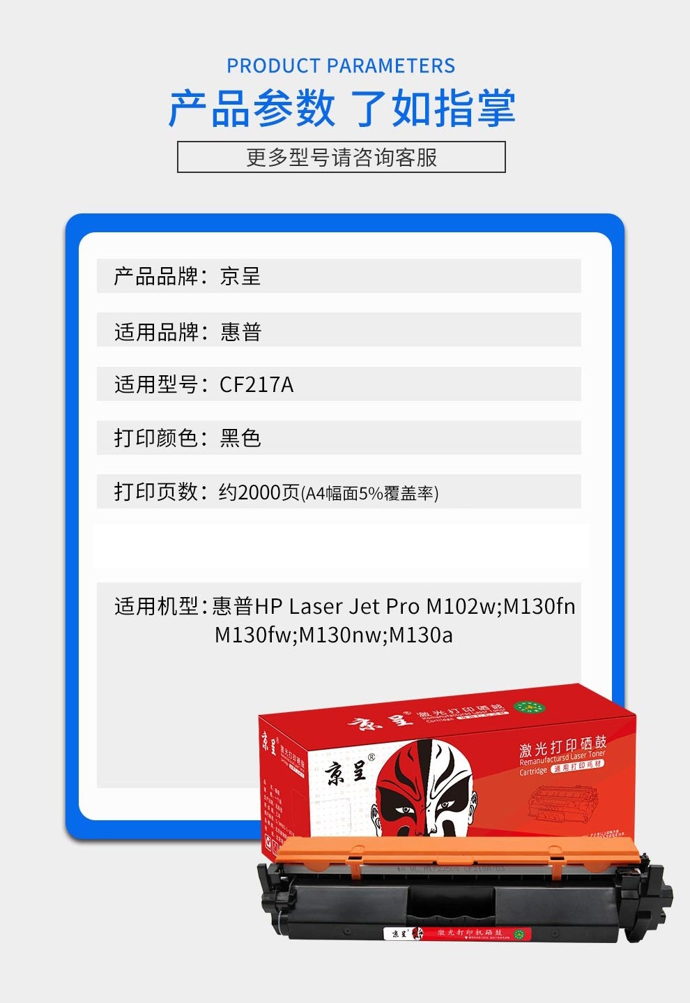京呈CF217A适用惠普HP17A墨粉盒M102w M130fn硒鼓130fw 130nw 130a 【带芯片】CF217A 黑色粉盒