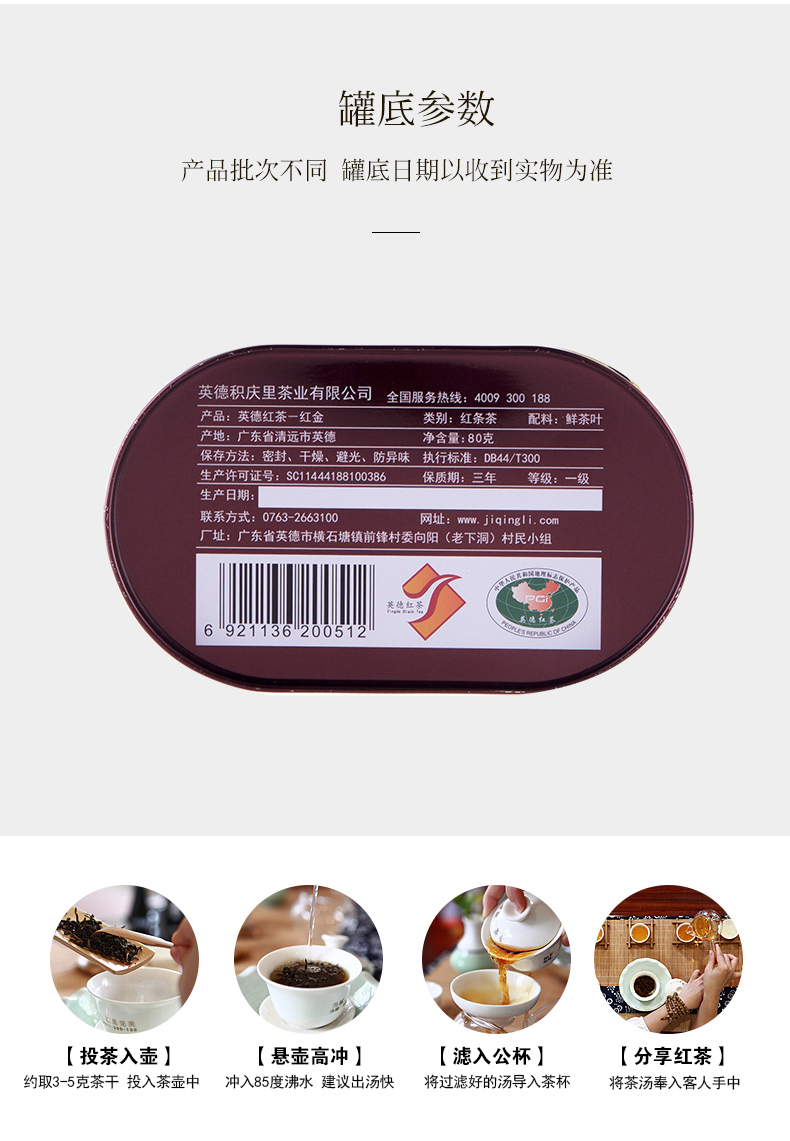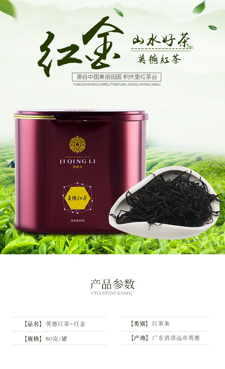 积庆里(jiqingli)英红九号 英德红茶 单罐红金80克 (单位:罐) 酒红