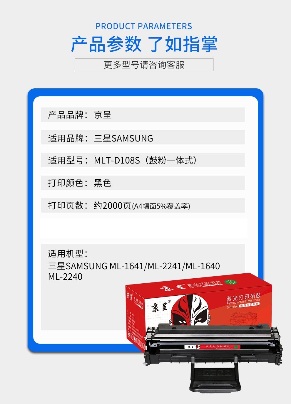京呈适用三星ML-1641硒鼓108S墨盒1640 碳粉盒1642墨粉盒2240K打印机2241 黑色