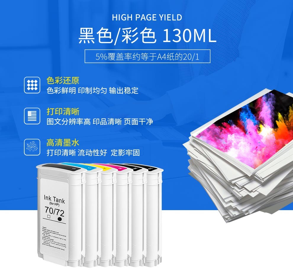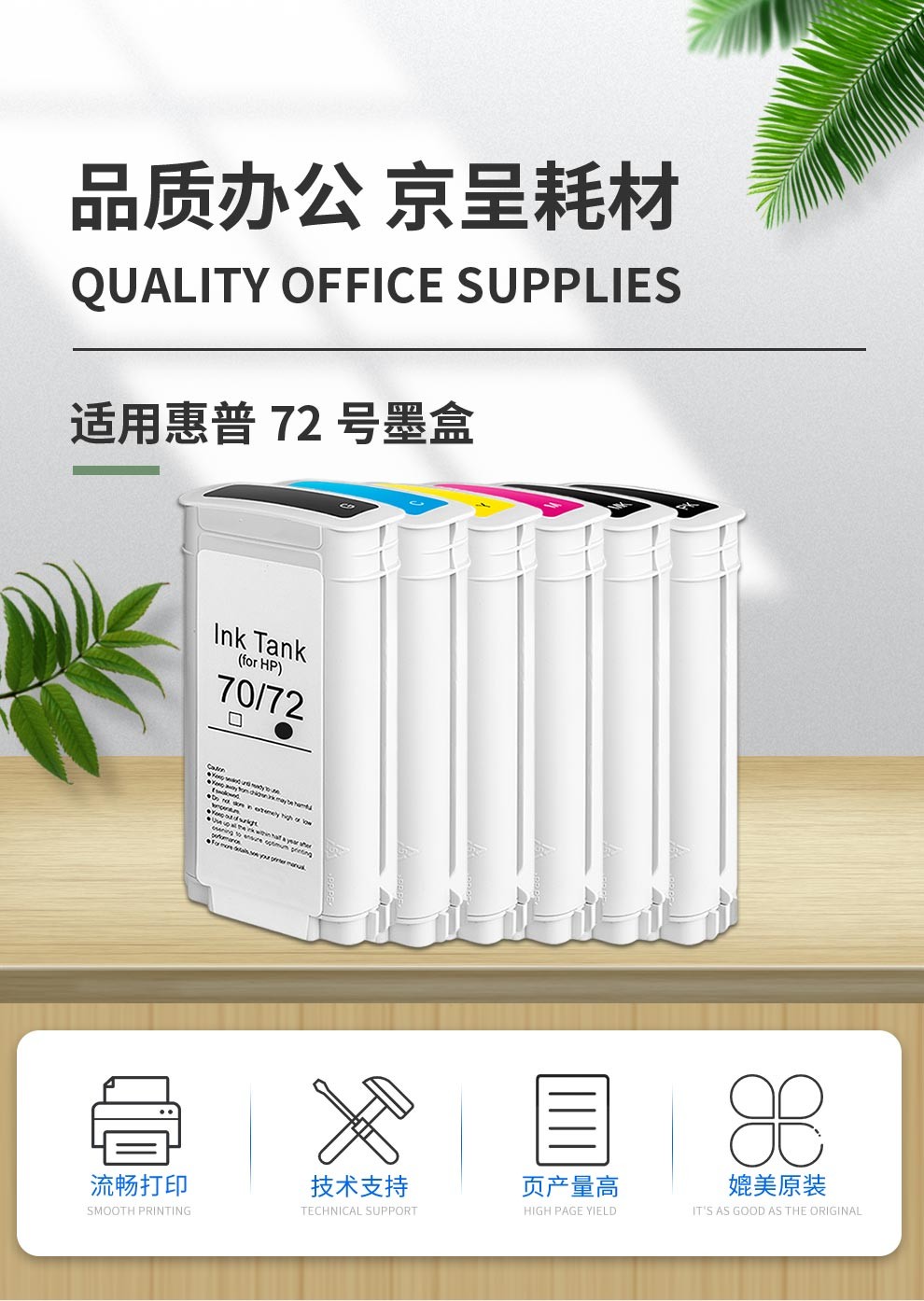 京呈适用惠普HP T610/T770/T790/T795/T1100绘图仪墨盒墨水72号打印头喷头 【黄色72Y墨盒】C9373A/支