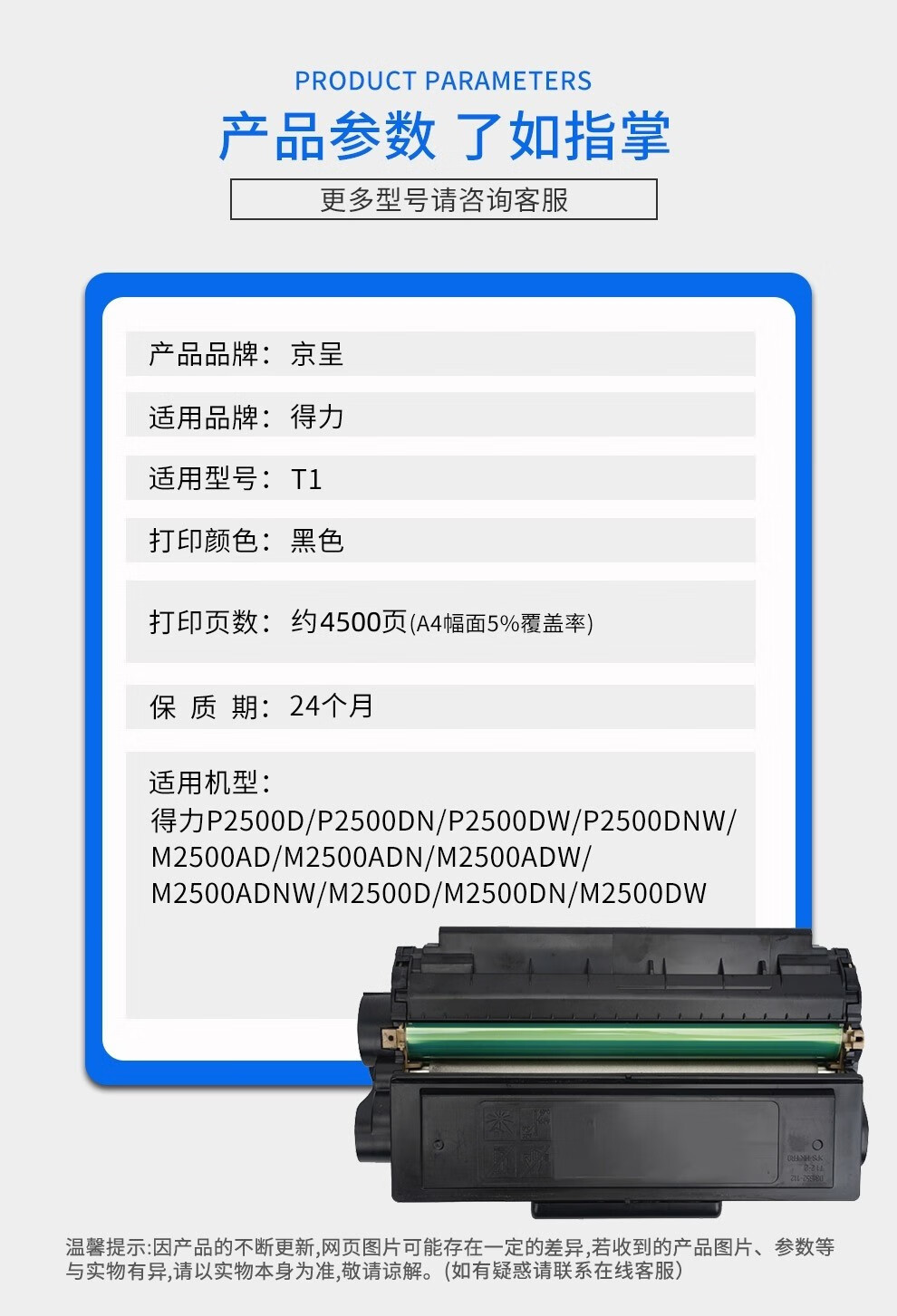 京呈适用得力T1硒鼓碳粉盒 P2500D/DN/DW/DNW M2500D/DW/ADNW打印机墨盒/支 【高配版】T1碳粉-1瓶装100g/瓶
