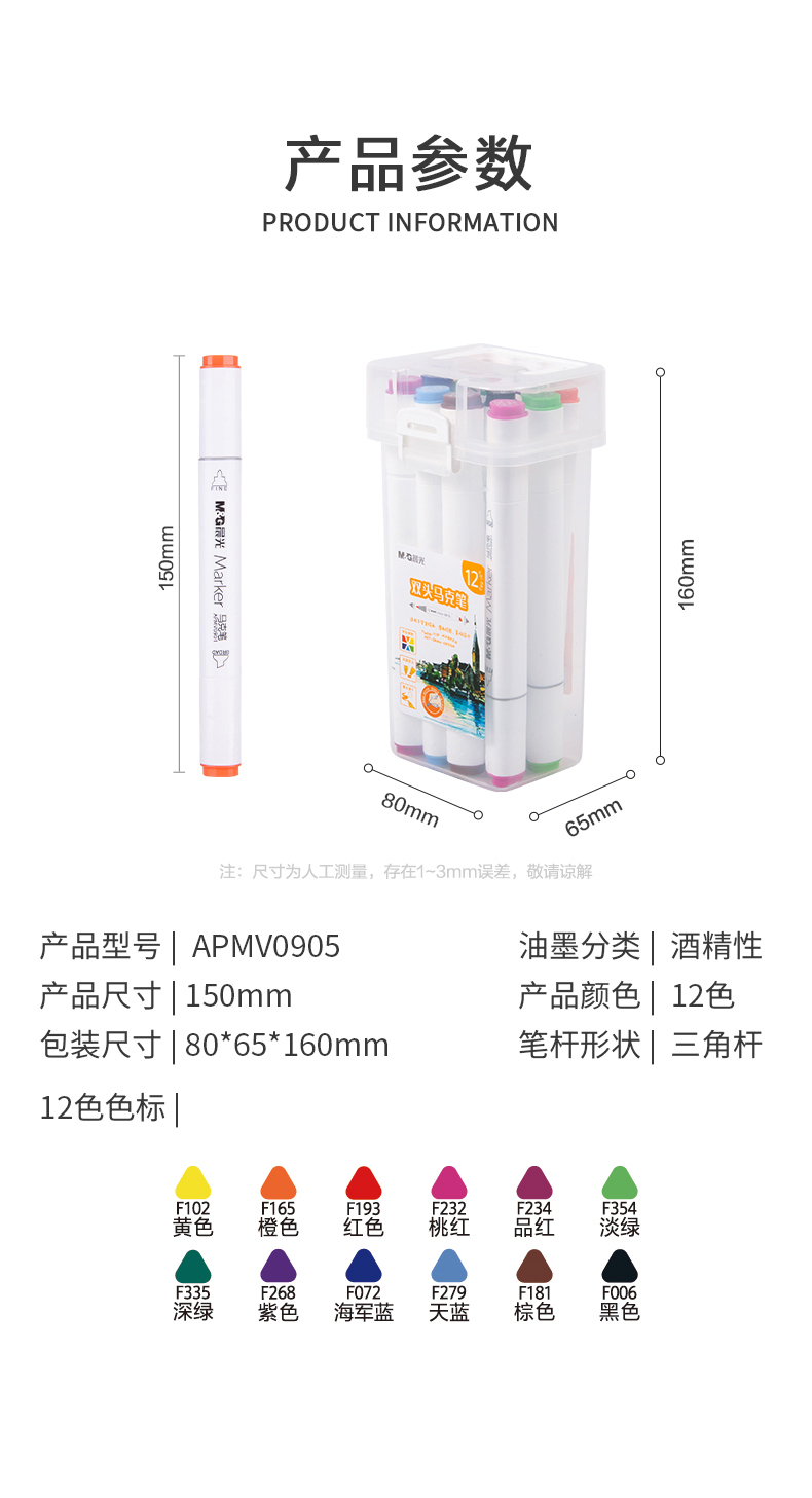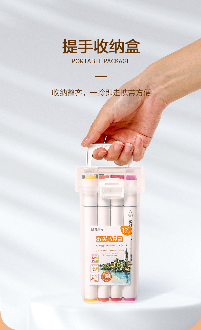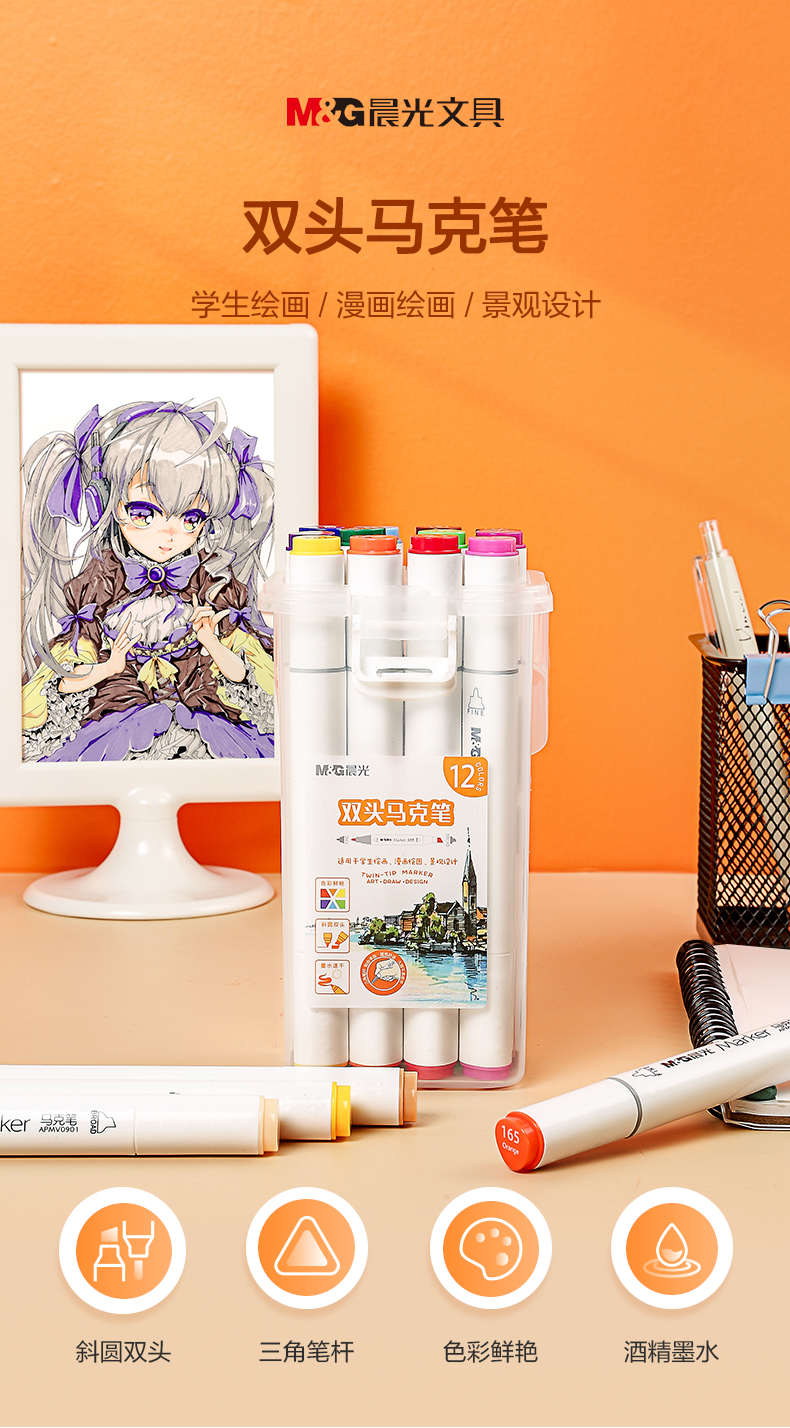 晨光(M&G)文具12色双头酒精性快干马克笔 纤维笔头水彩笔 绘画手绘涂鸦工具APMV0905开学礼物 套 12色