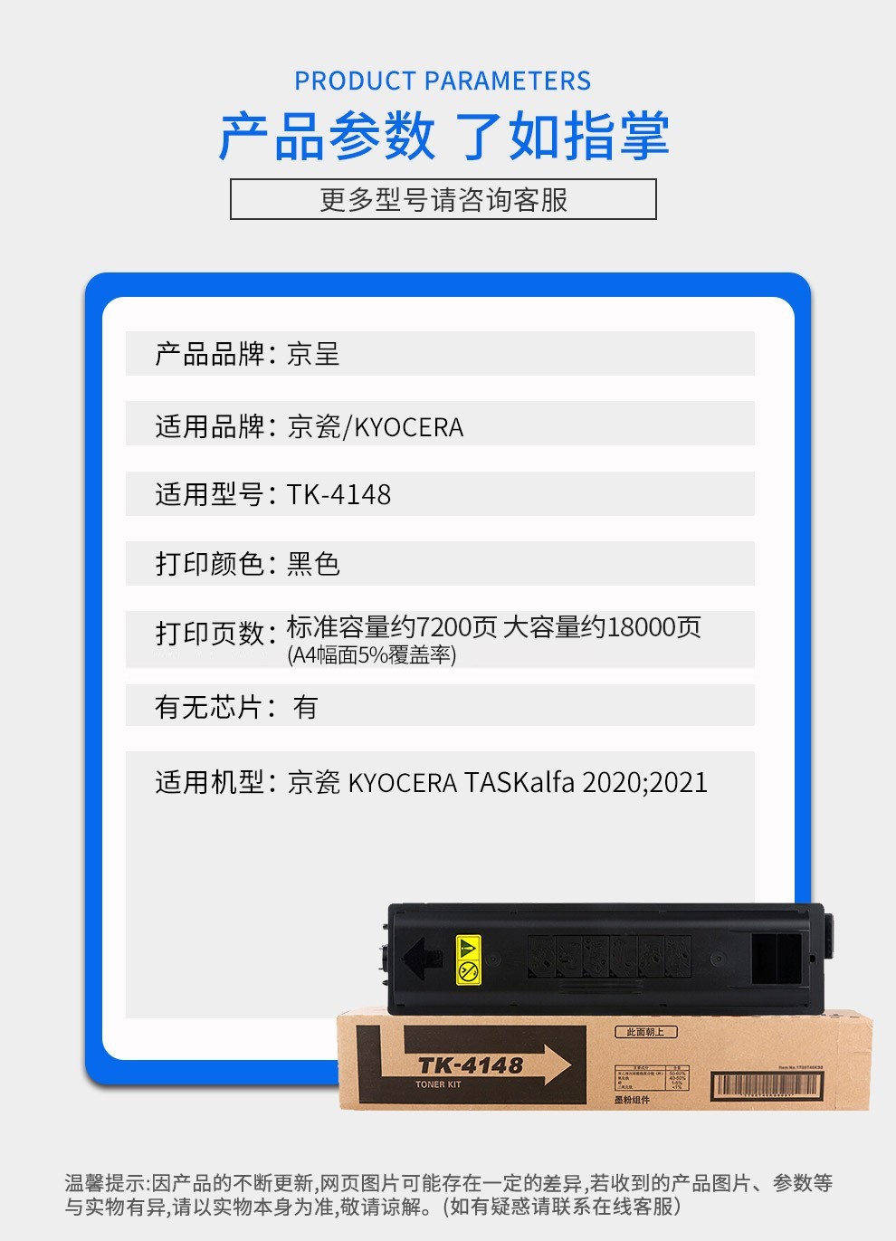 京呈适用京瓷TK-4148粉盒TASKalfa2020 2021复印机墨粉京瓷2020 2021墨盒TK-4148 大容量墨粉盒2支/套 大容量粉盒2支