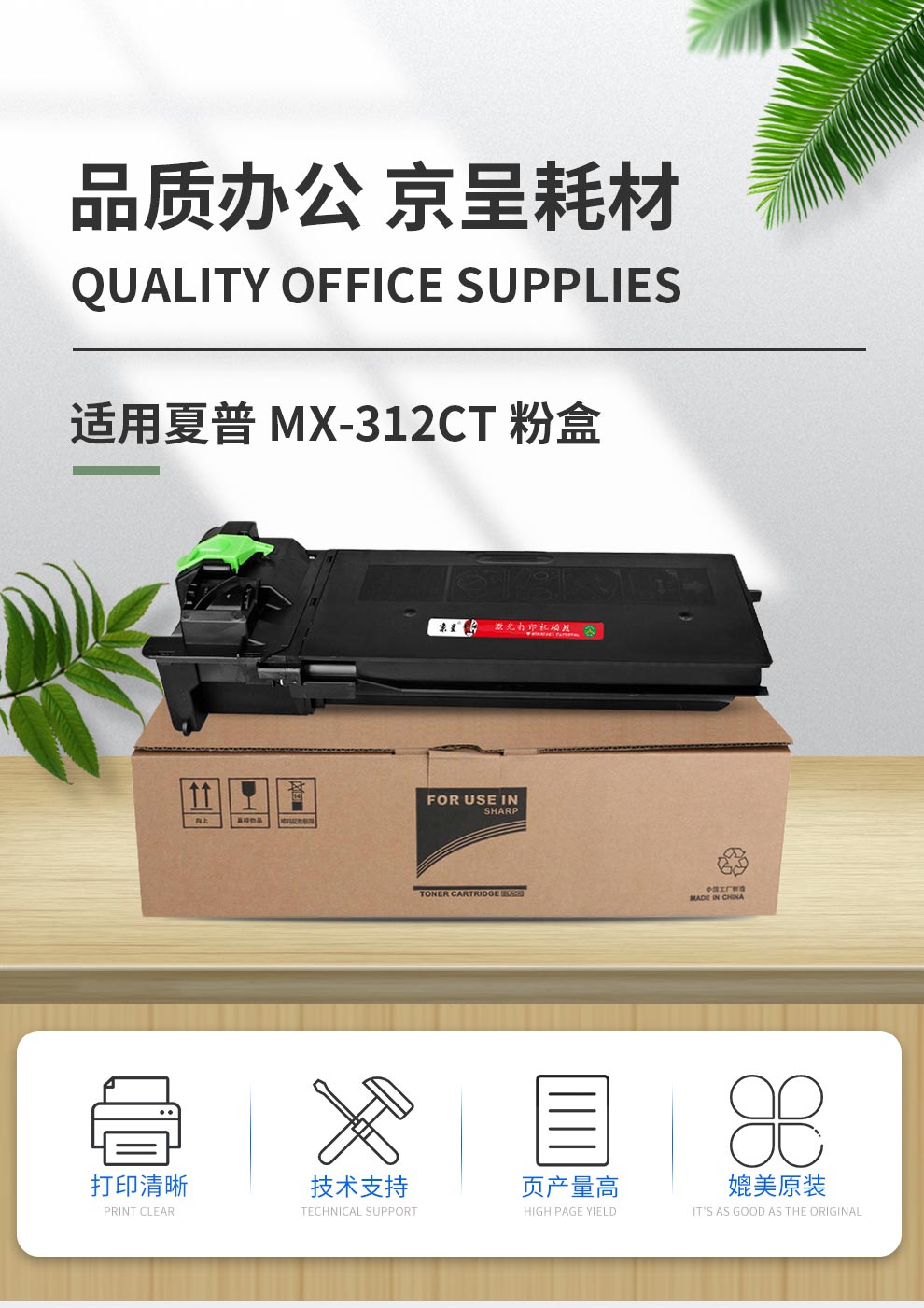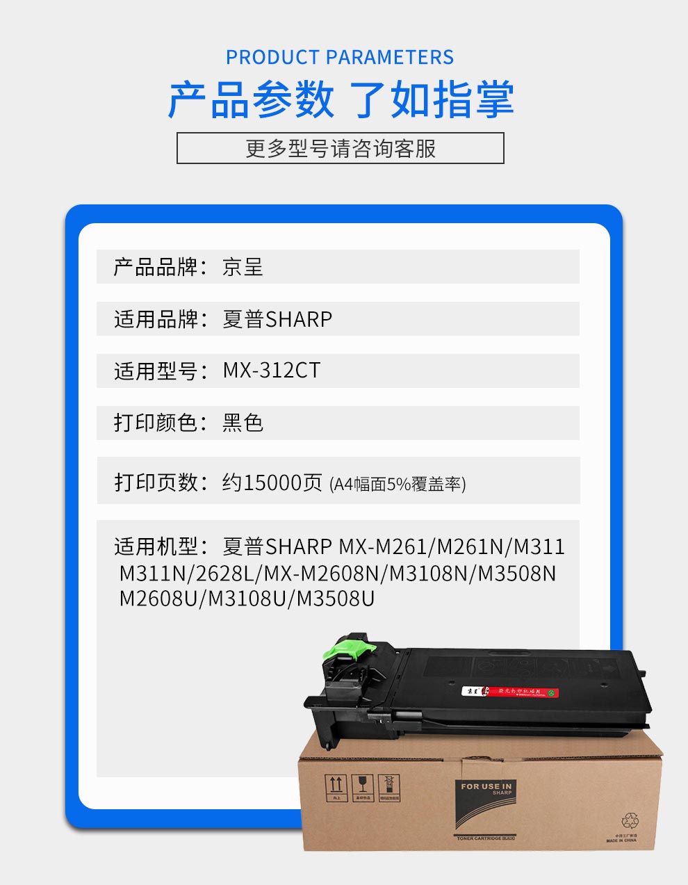 京呈MX-312CT适夏普2608U粉盒2608N墨粉261N 311N墨盒M3108 M3508/支 【15000页】MX-312CT黑色粉盒