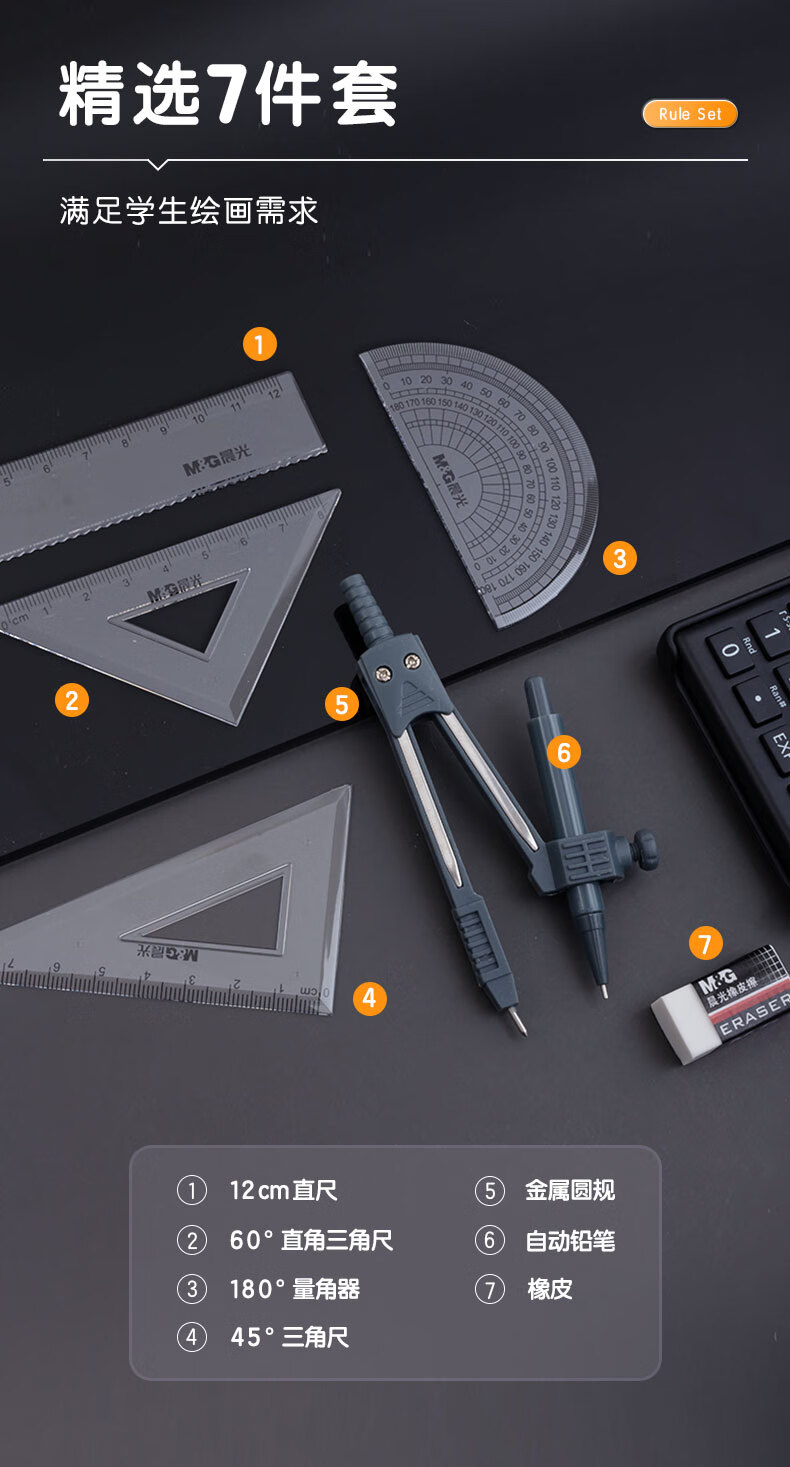 晨光(M&G) ACS90806 7件套 尺规套装 透明色(单位:套)