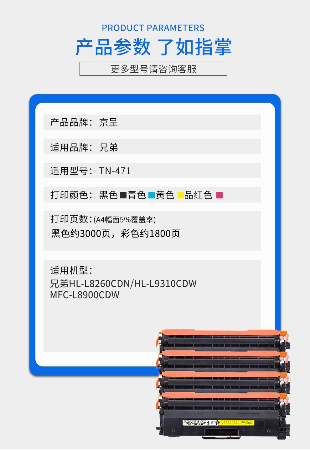 京呈 适用兄弟mfc-l8900cdw粉盒TN471 476 hl-L9310 l8260cdn硒鼓/套 TN471四色粉盒套装 8400页