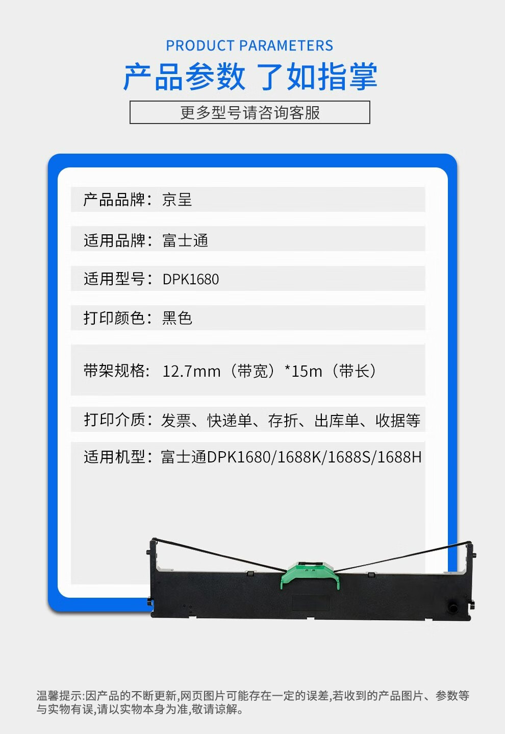 京呈 适用富士通DPK1785K色带架 FR1680B色带芯 DPK1686 1688针式打印机/支 【1支装】上机即用