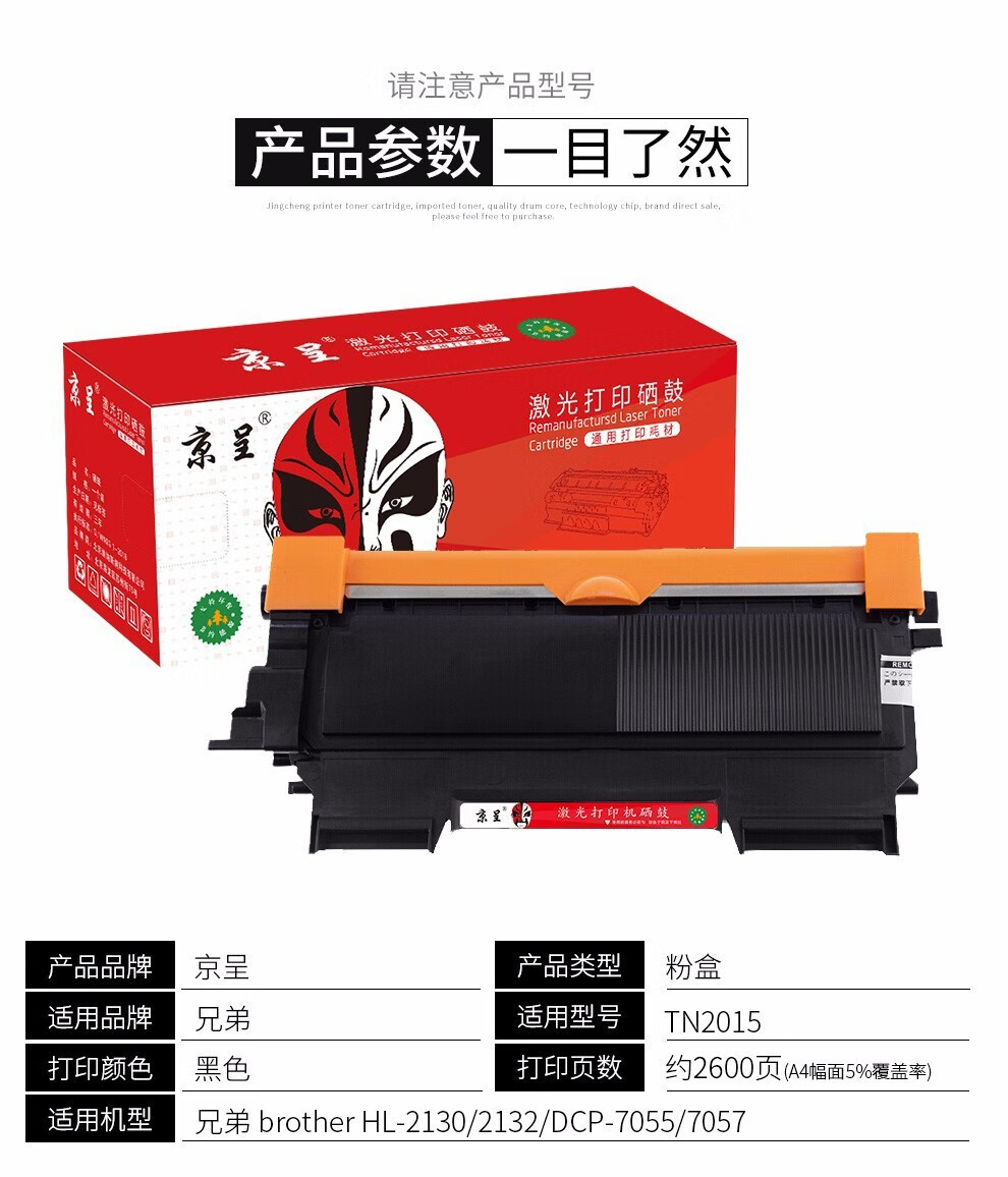 京呈TN2015粉盒适用7057兄弟DCP-7055硒鼓HL-2130 2132成像鼓MFC7290/支 TN-2015 易加粉 粉盒2600页