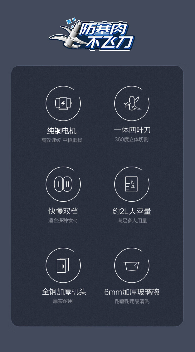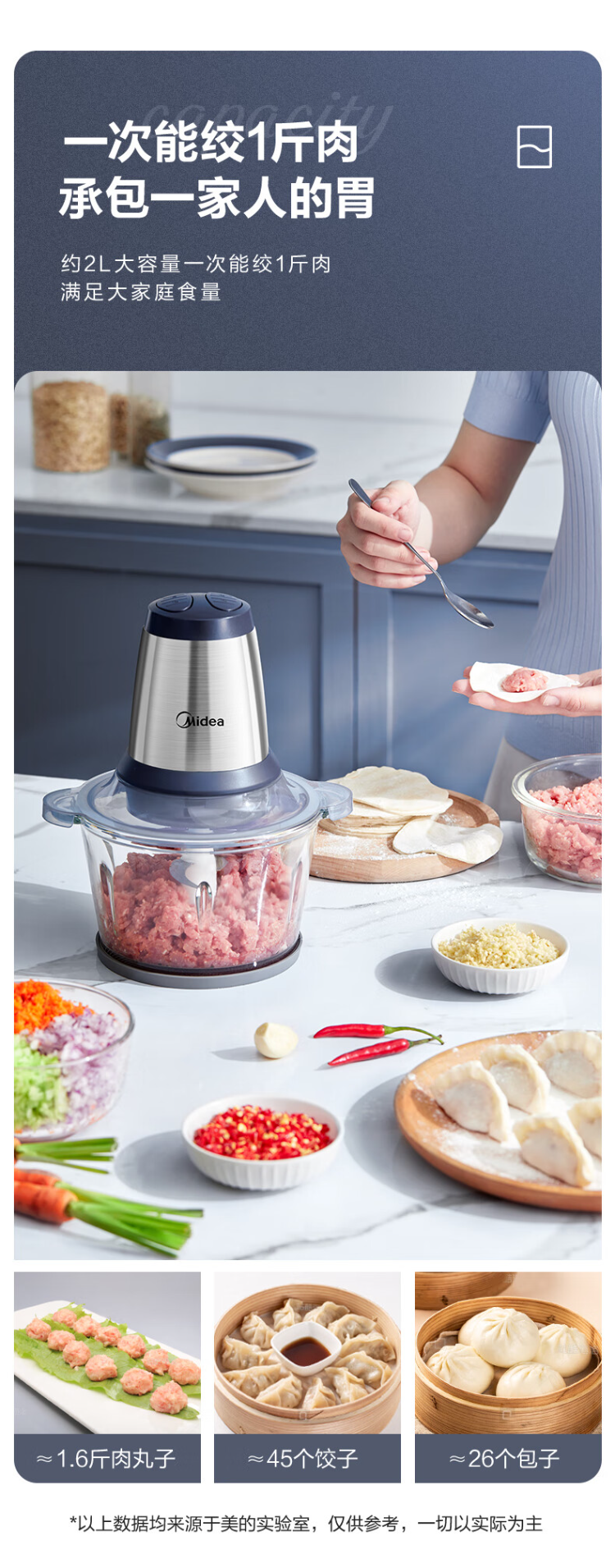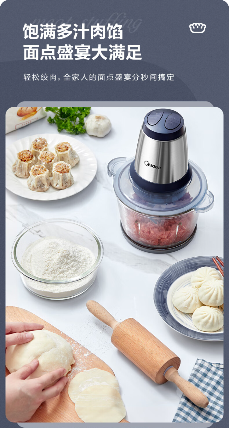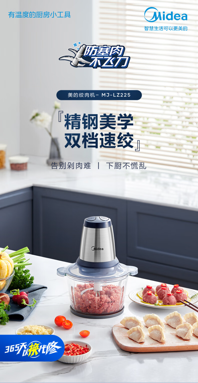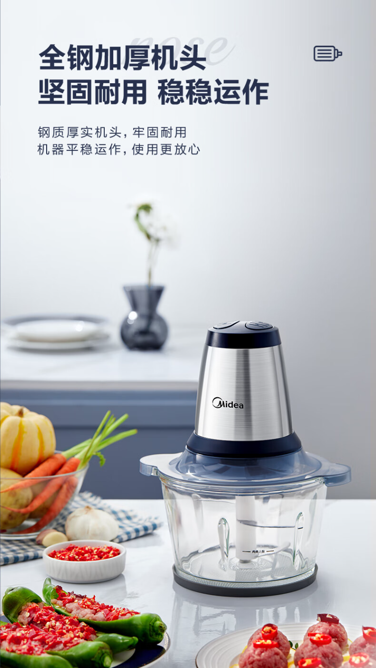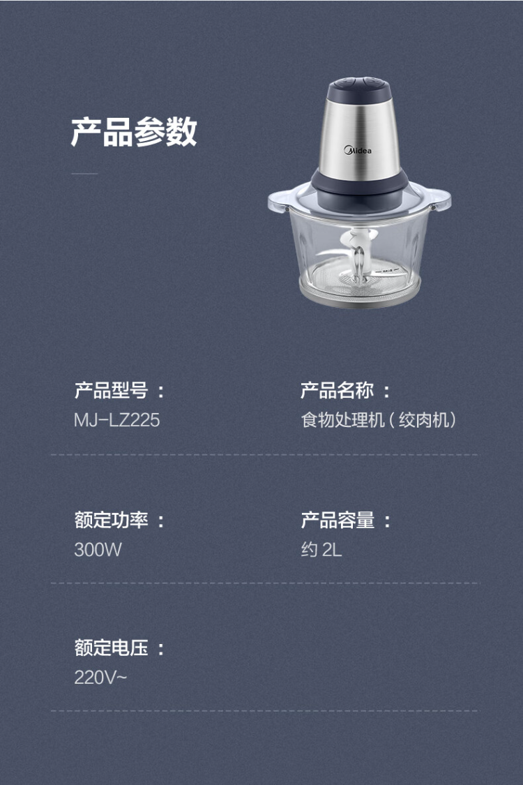 美的(Midea)绞肉机 LZ25Easy225 2L 玻璃机身(单位:台) 蓝色
