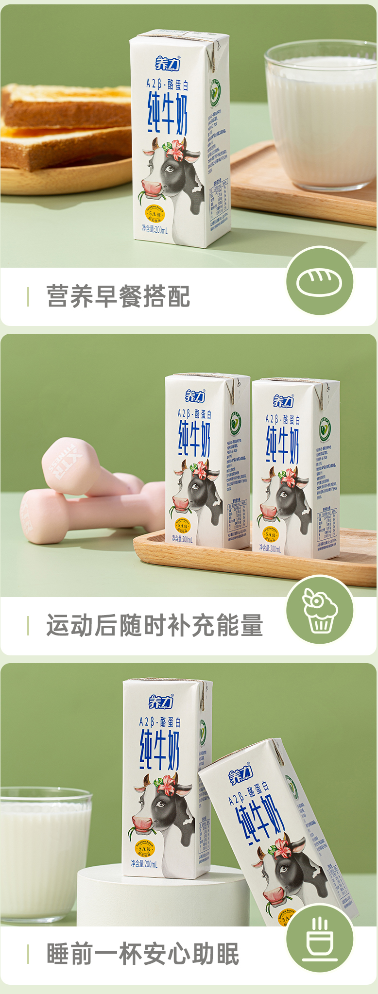 养力 A2β-酪蛋白纯牛奶200ml*12盒 白色