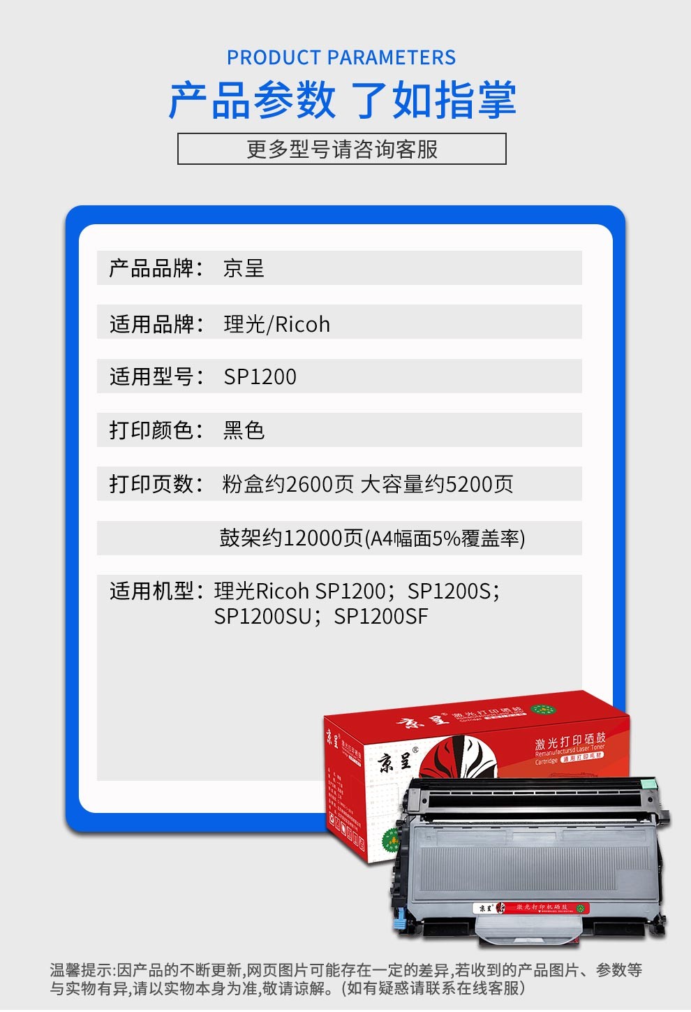京呈SP1200粉盒适用理光SP1200S碳粉SP1200SU粉盒SP1200SF打印机硒鼓墨粉/支 SP1200粉盒 【2600页】