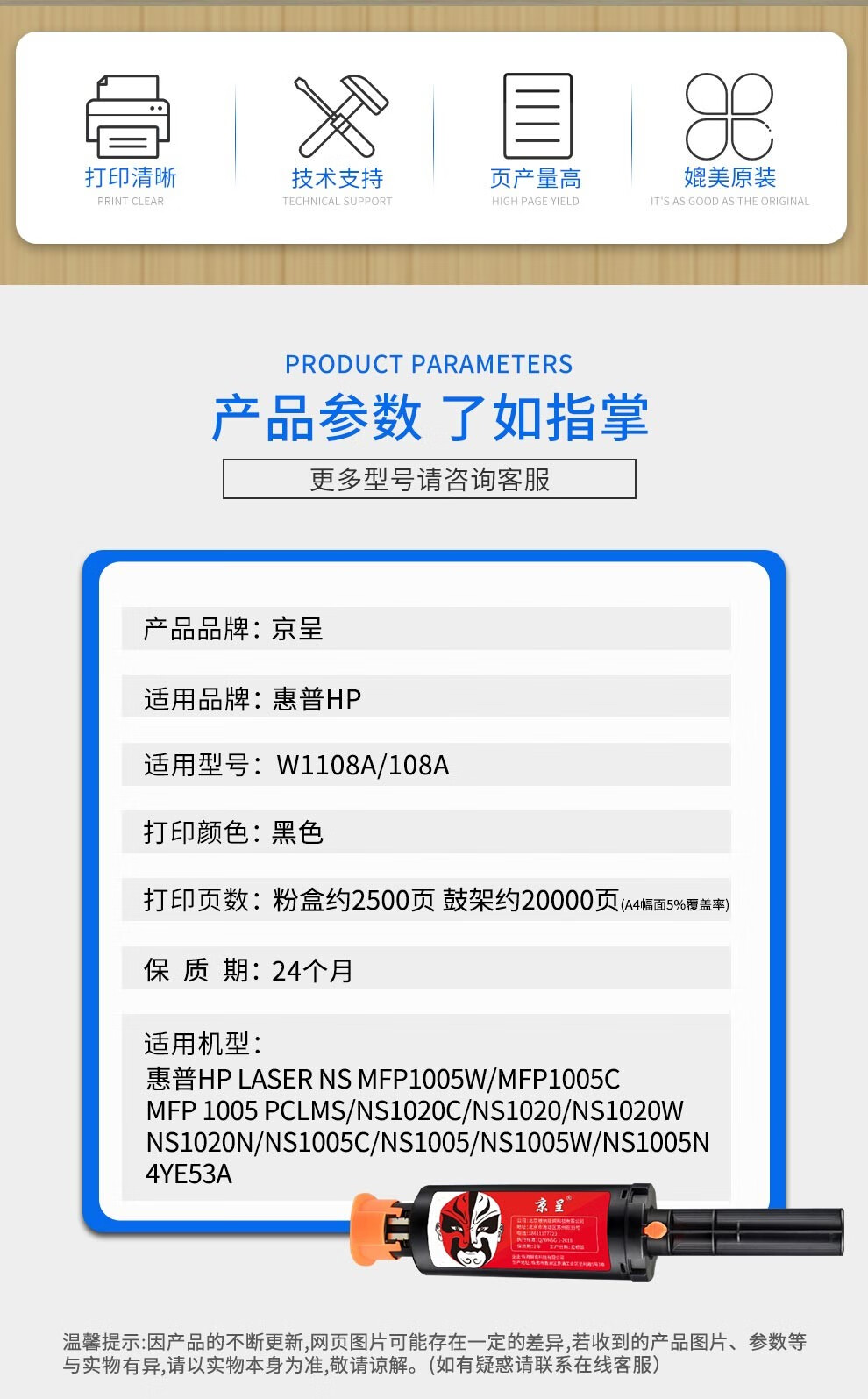 京呈适惠普ns1005w闪充粉盒108a hp1005w 1020c 1020w硒鼓ns1020w/支 W1109A感光鼓组件(内含碳粉)