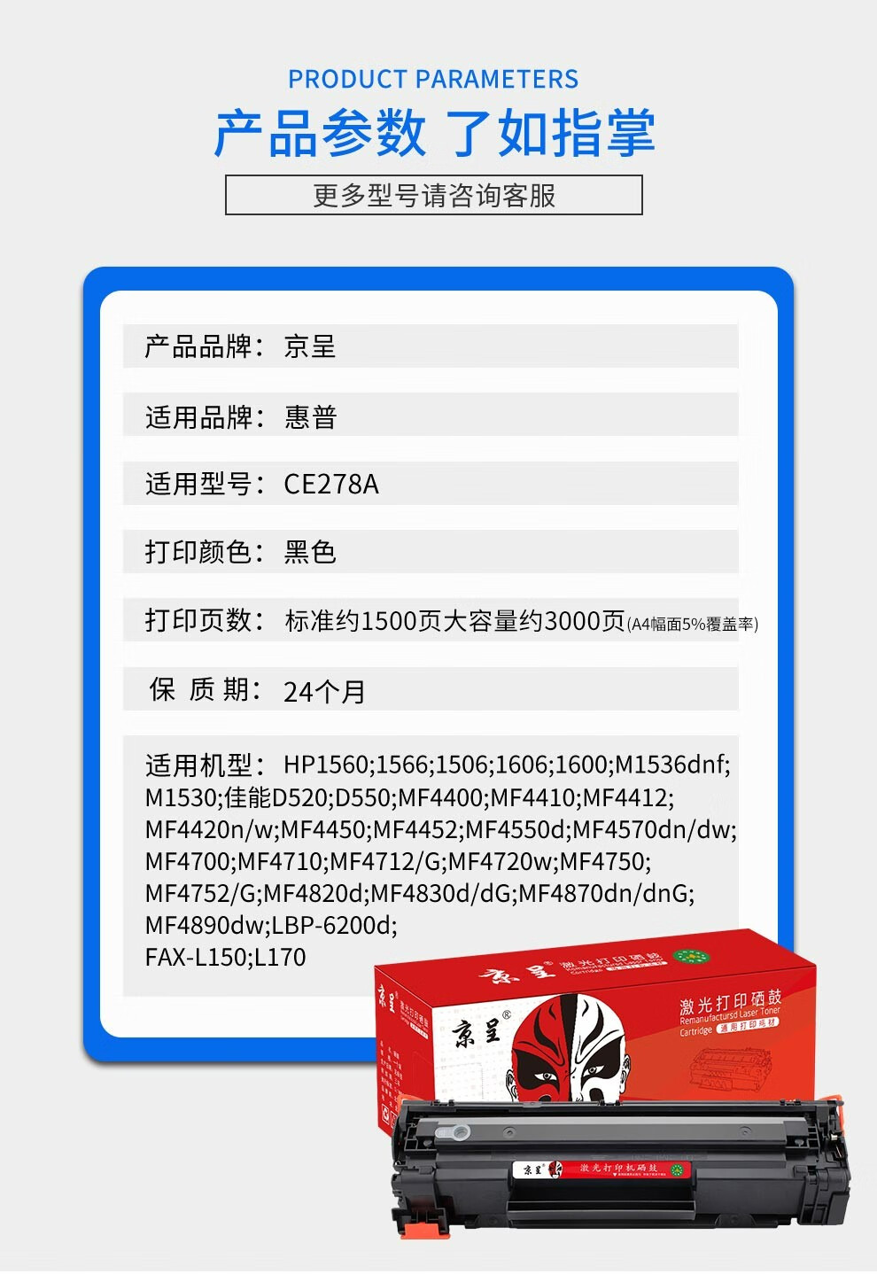 京呈CE278A 78A适用惠普M1536dnf硒鼓P1560 P1566 P1606dn打印机墨盒/支 CE278A黑色碳粉 1瓶装
