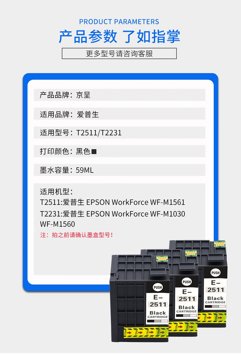 京呈适用爱普生T2511墨盒251油墨Epson WF-M1561墨盒WF-M1030打印机油墨/支 T2511墨盒 -1支装