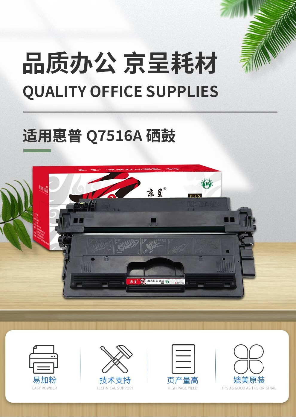 京呈Q7516A 16A硒鼓适惠普HP 5200 5200LX/n佳能粉盒CRG-309 打印机墨盒/支 Q7516A黑色 大容量12000页