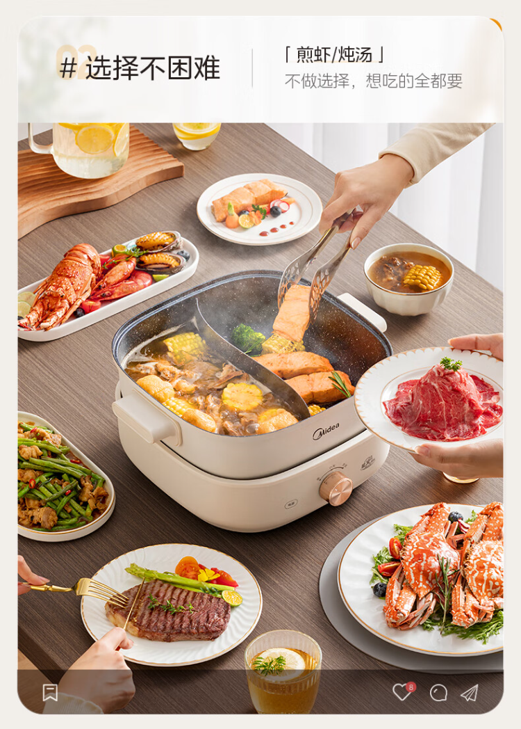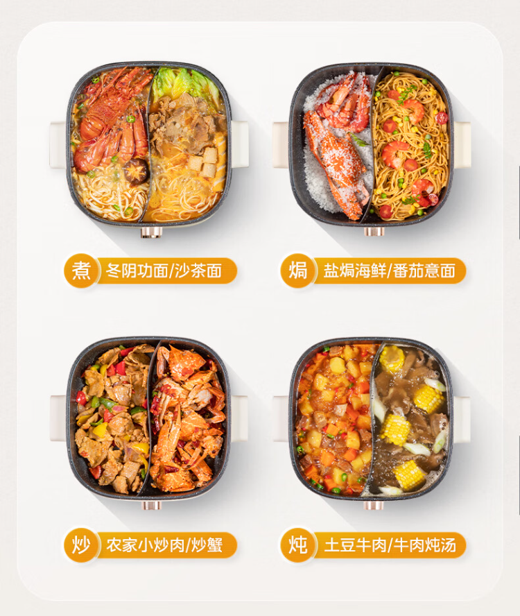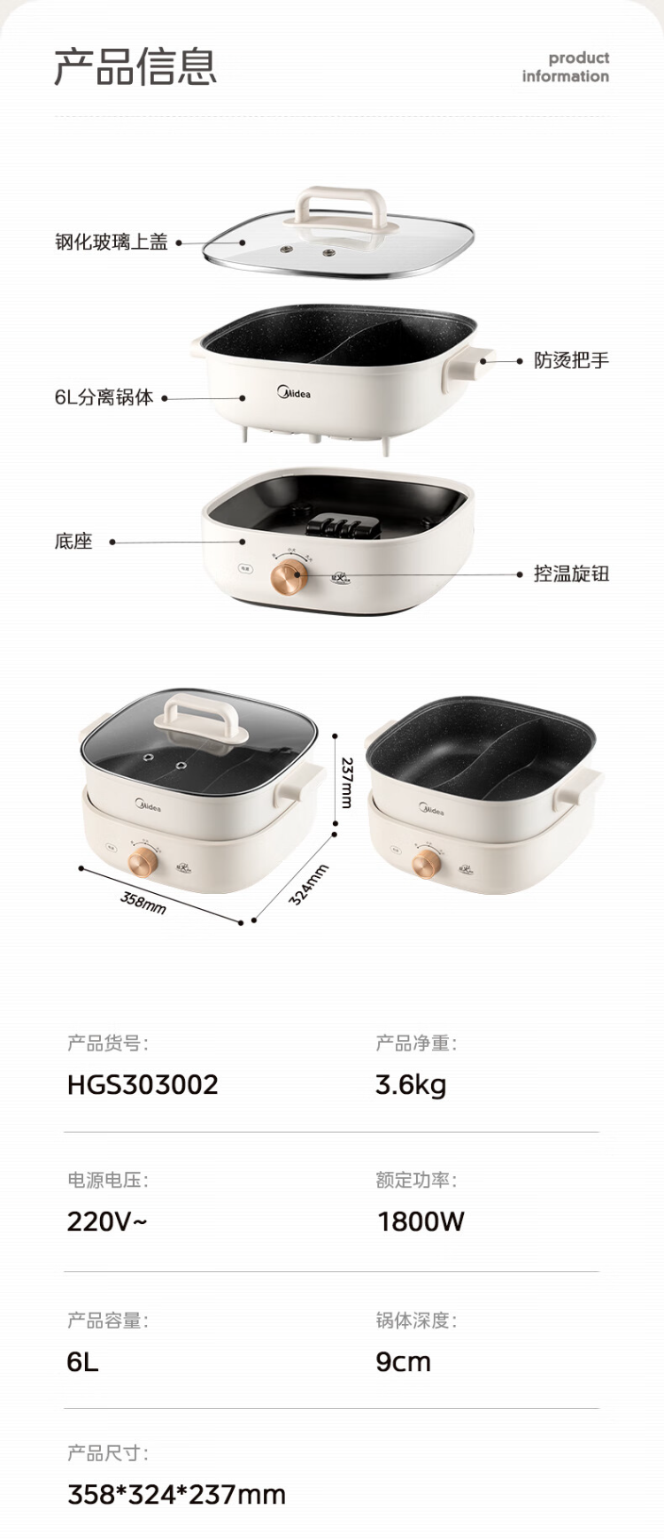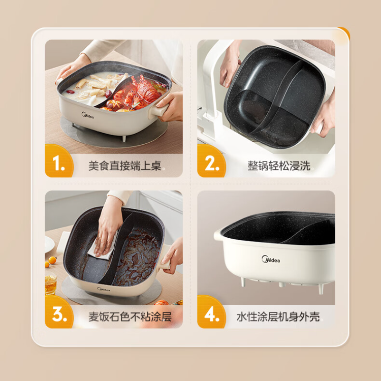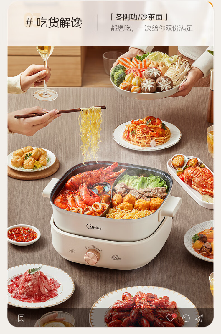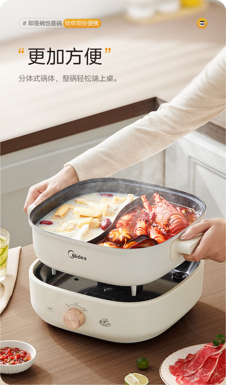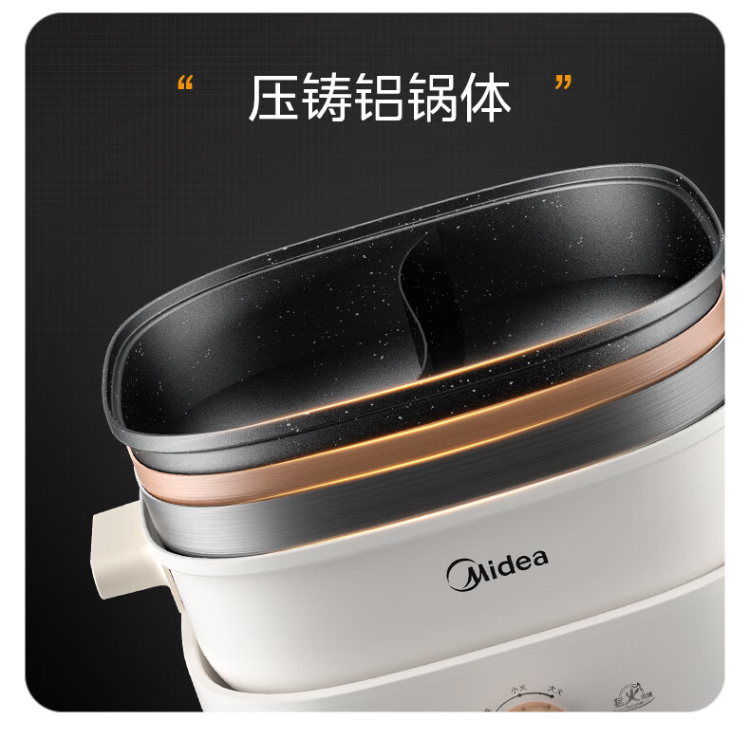 美的(Midea)HGS303002电火锅 多功能锅 6L 可拆鸳鸯锅(单位:台) 白色