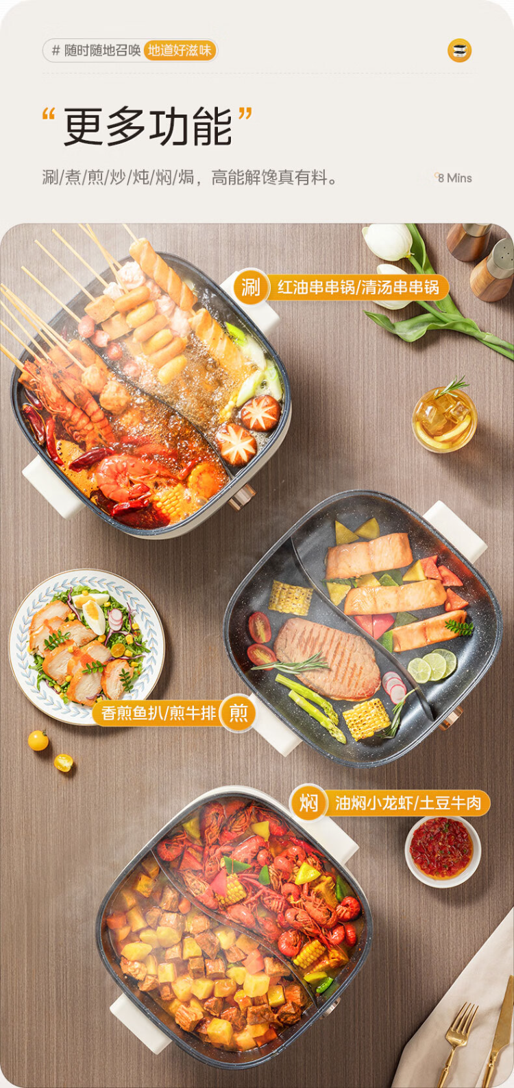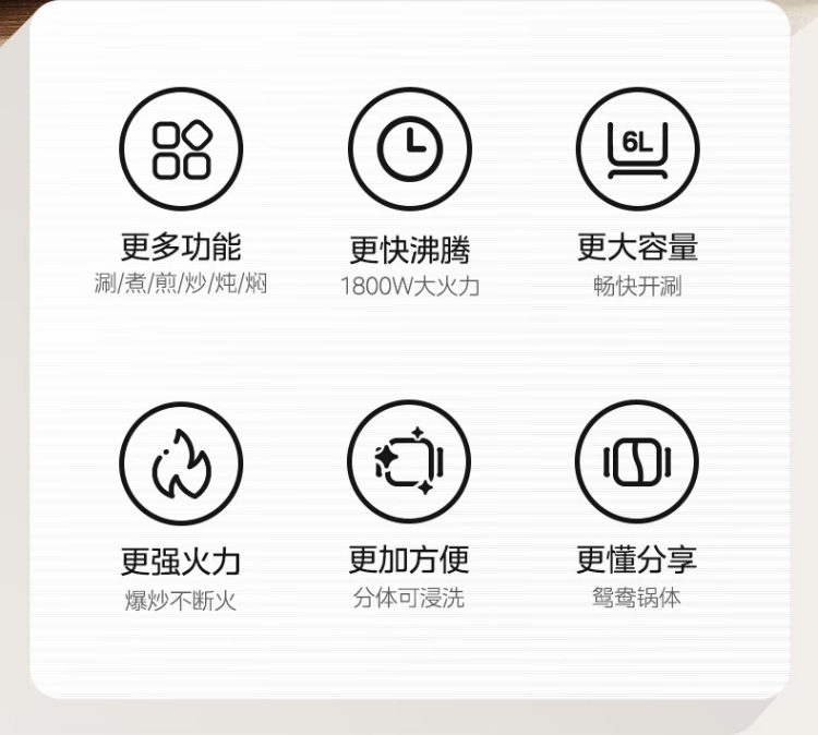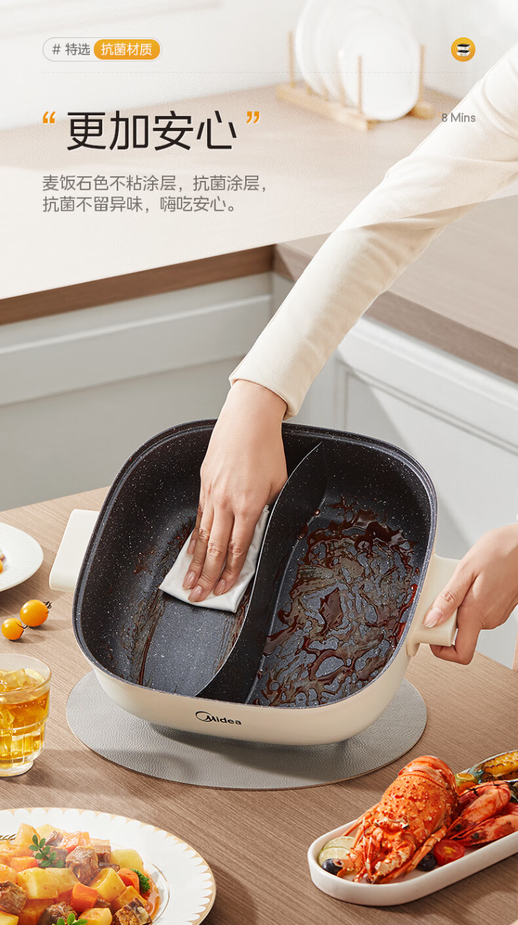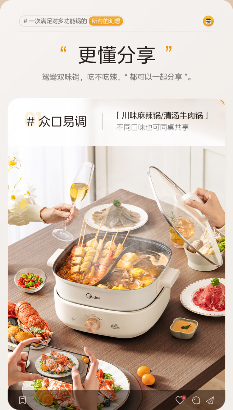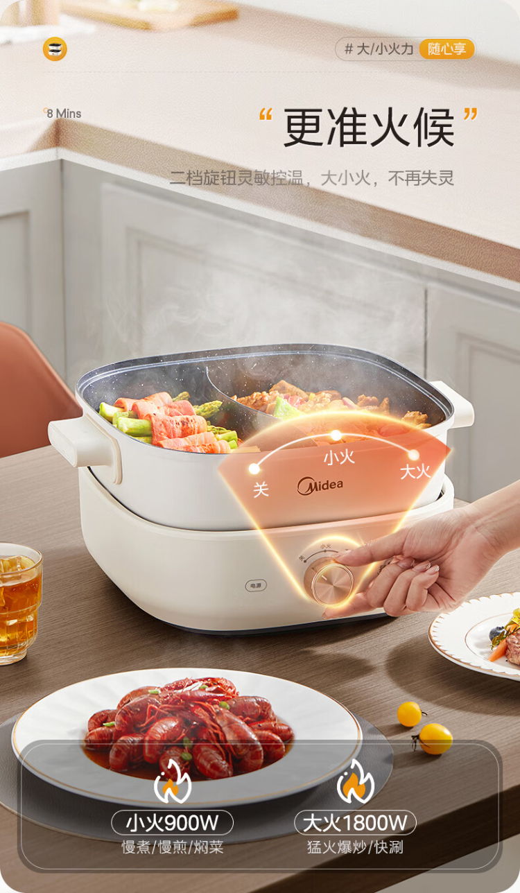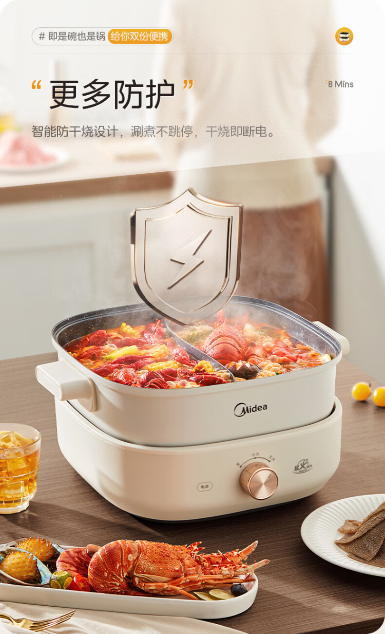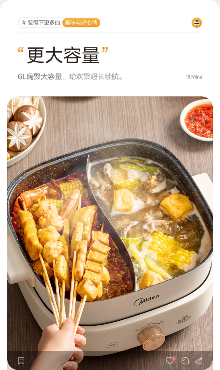 美的(Midea)HGS303002电火锅 多功能锅 6L 可拆鸳鸯锅(单位:台) 白色