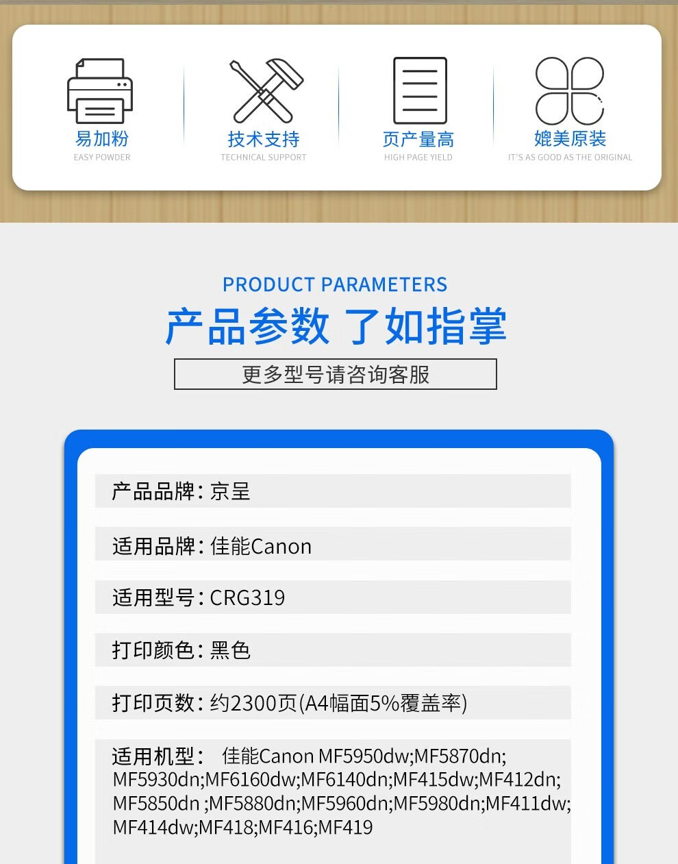 京呈CRG319硒鼓适佳能LBP6300dn 6650dn 5950dw 5870dn 6160粉/支 【2300页】CRG319黑色硒鼓