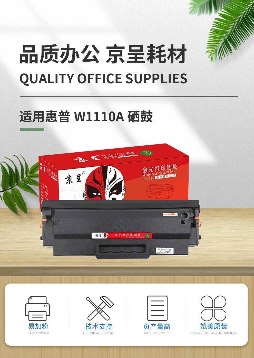 京呈适用惠普136w硒鼓136a 136nw 136wm 108w 108a打印机墨盒w1110a110A硒鼓(不带芯片,需安装旧芯片)/支 粉盒(无芯片)1支装