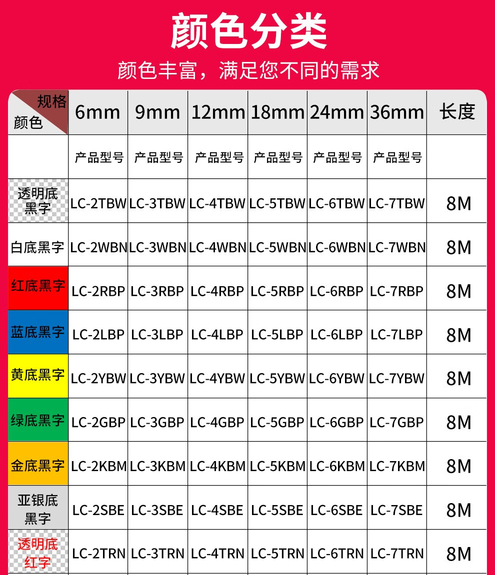 京呈 适用爱普生EPSON 标签机色带标签带标签纸6 9 12 18 24 mm不干胶标签打印机/支 透明底黑字