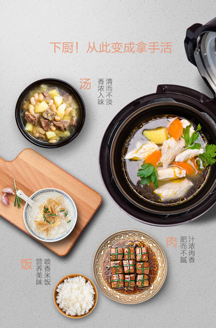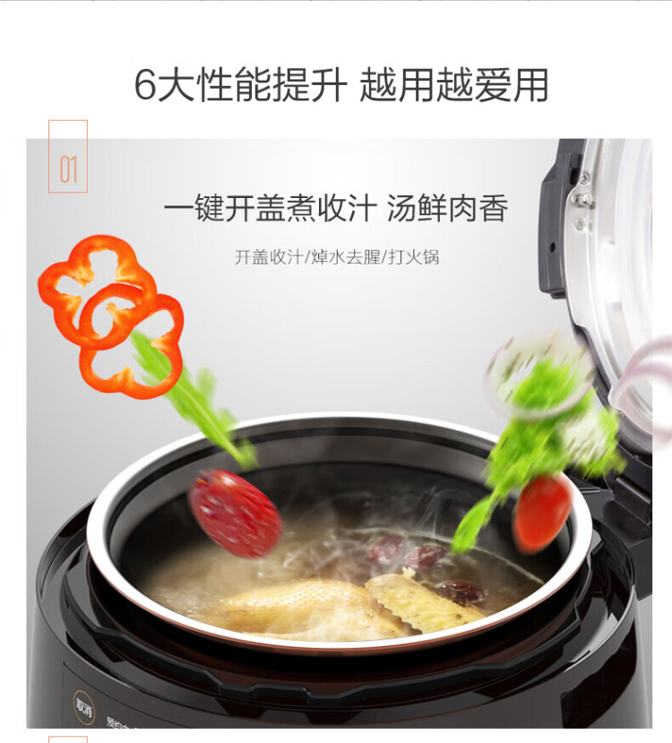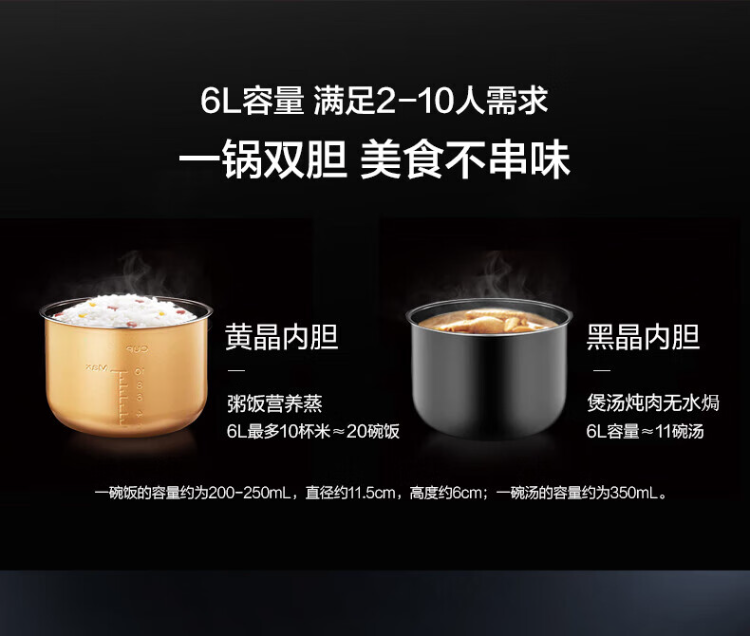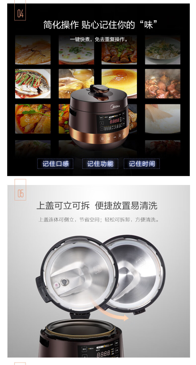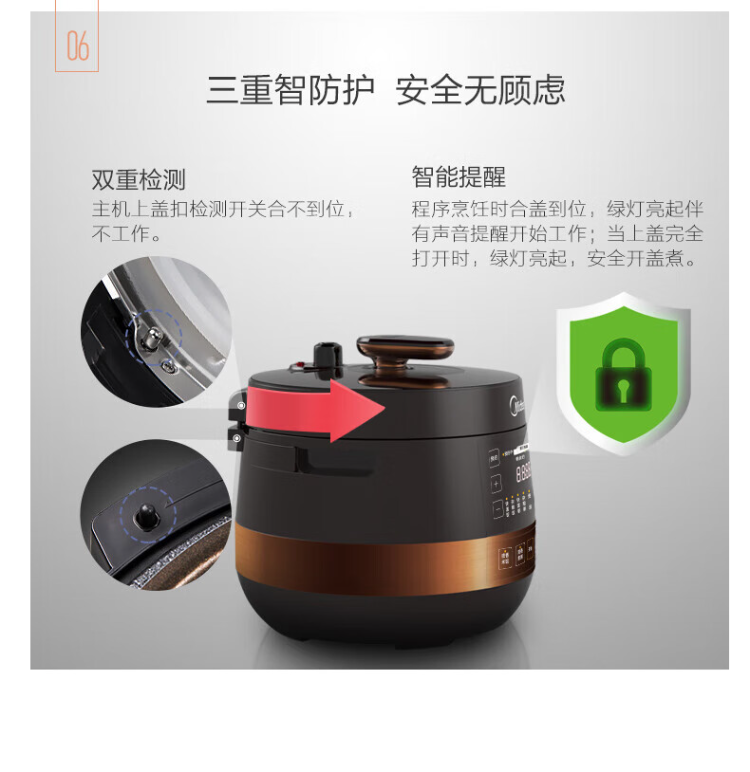 美的(Midea)电压力锅 MY-YL60Easy203 家用高压锅不粘双内胆电饭煲6L(单位:台) 棕色