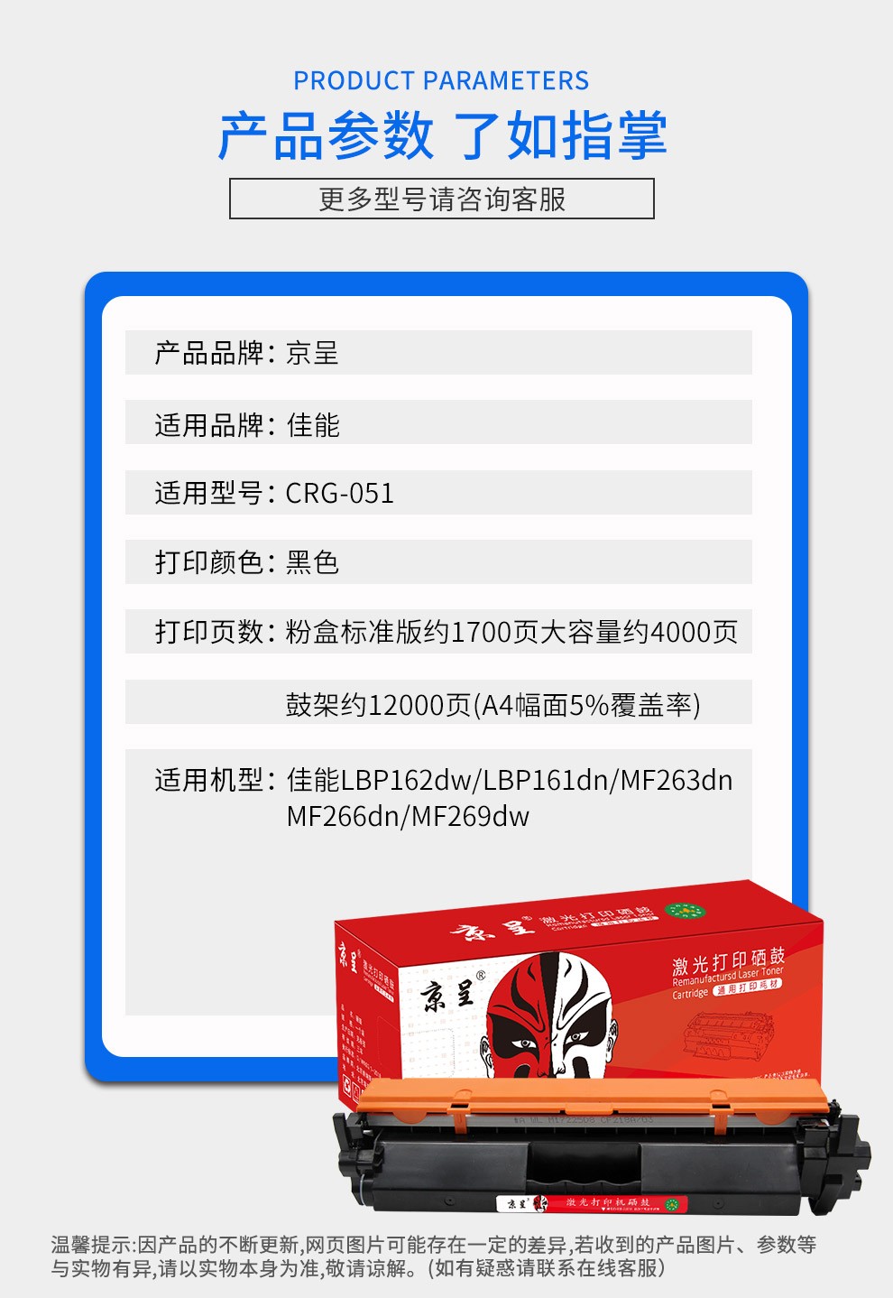 京呈CRG051适用佳能LBP162DW粉盒161DW墨盒MF263dn MF266dn/260硒鼓/支 CRG051感光鼓一支 约12000页