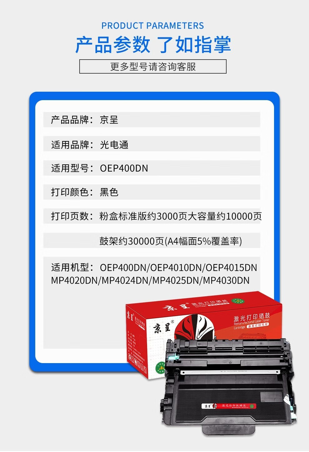 京呈 适用光电通OEP400DN硒鼓OEP4010DN墨盒MP4020DN打印机粉盒MP4030DN/支 T-40003KTB标准版粉盒