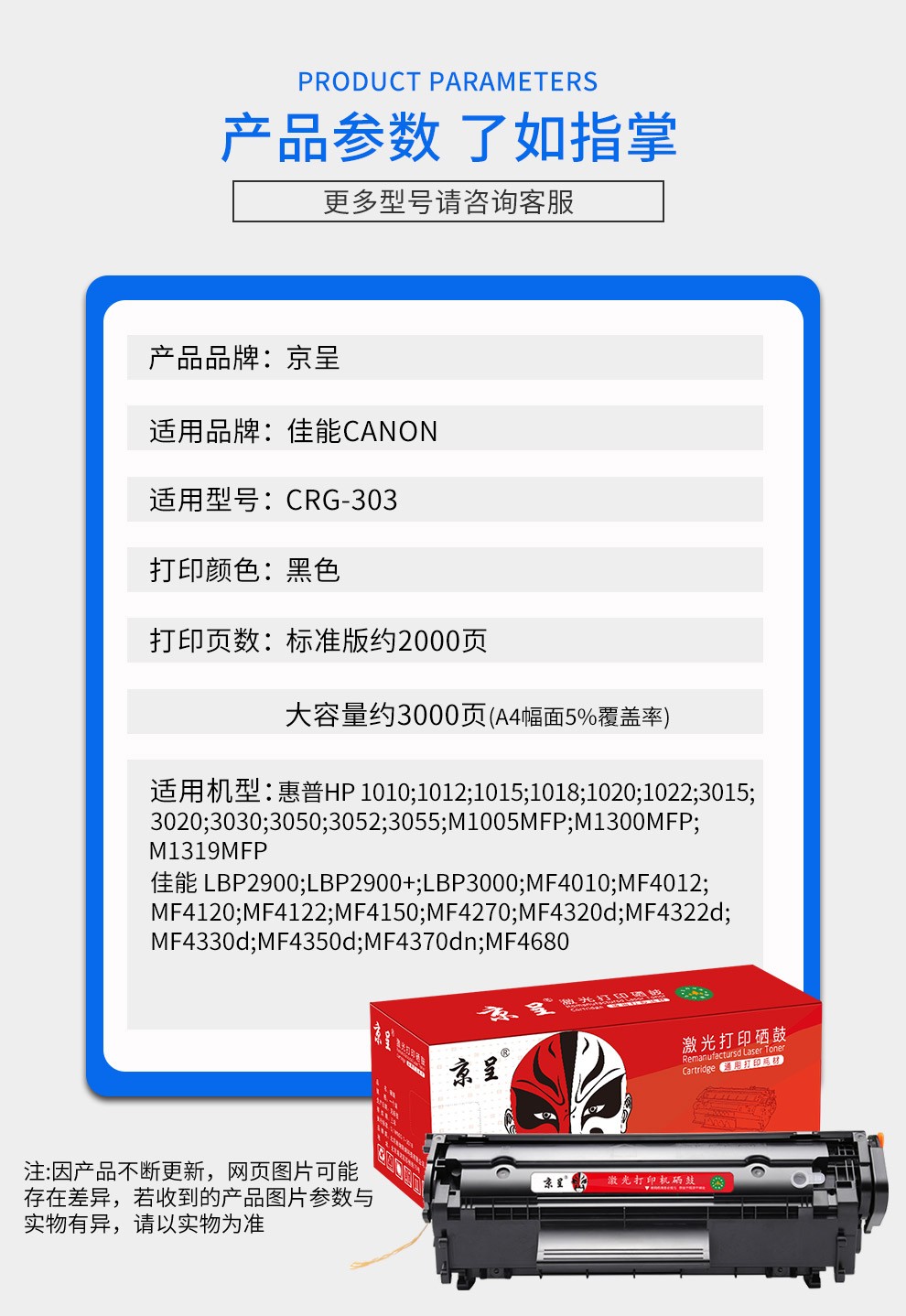 京呈适用佳能2900硒鼓LBP2900打印机墨盒LBP2900+ 3000 L11121E fx-9/支 【3000页】CRG303大容量硒鼓1支