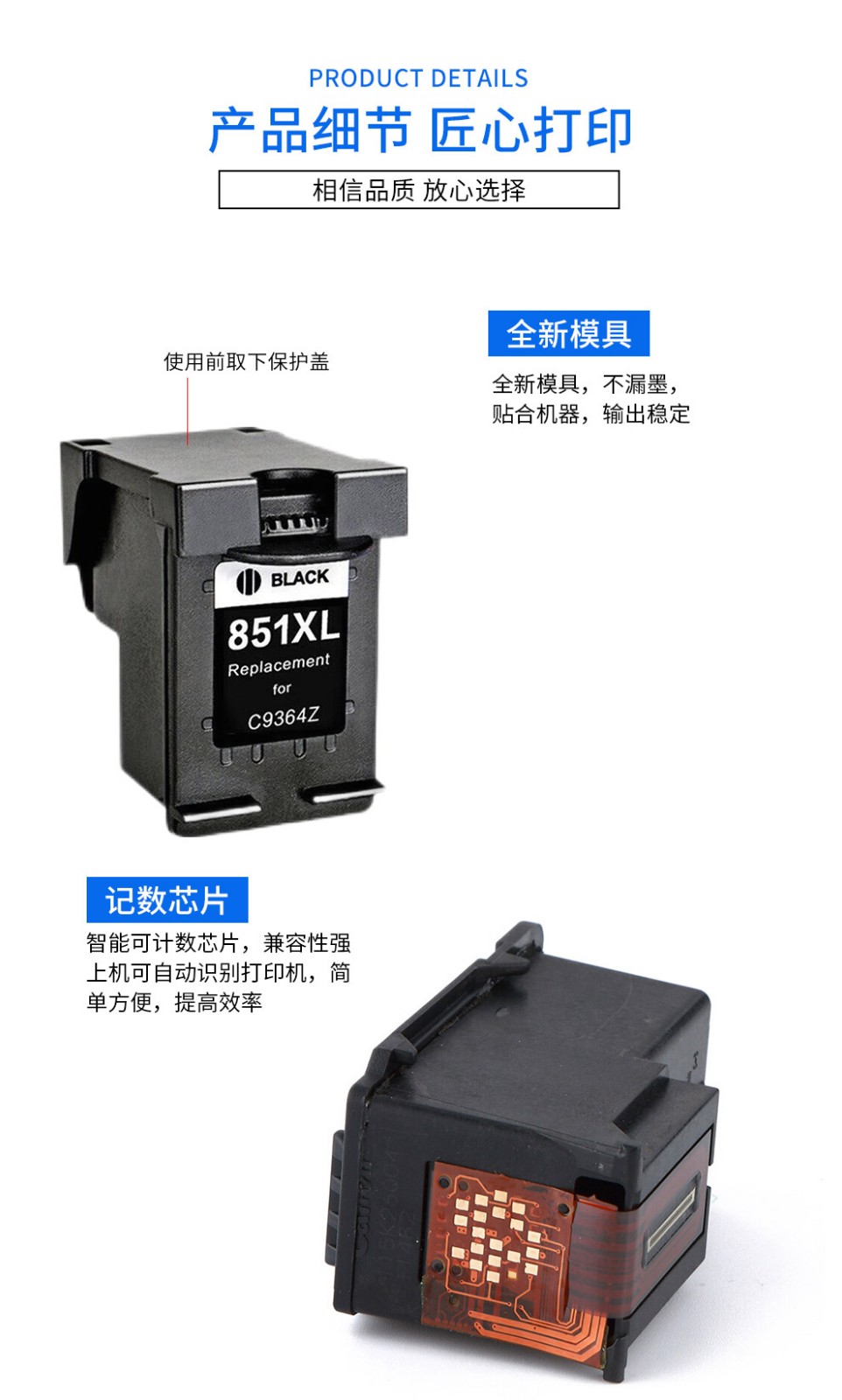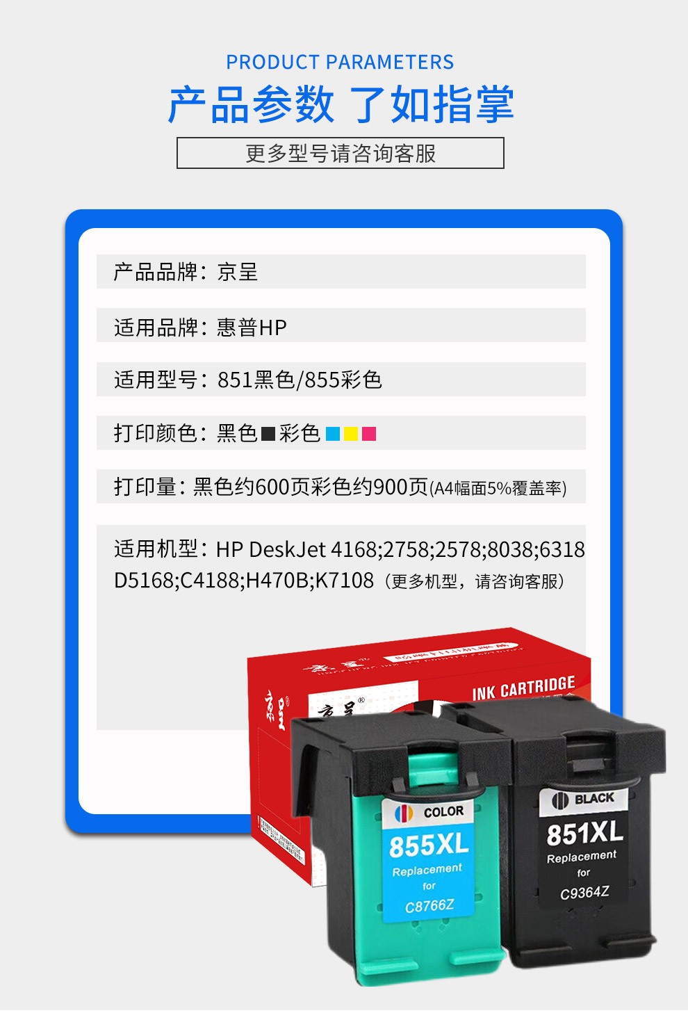 京呈HP851墨盒适用惠普HPOfficejet100/150/K7108/6318/855XL墨水/支 HP851XL黑色大容量墨盒
