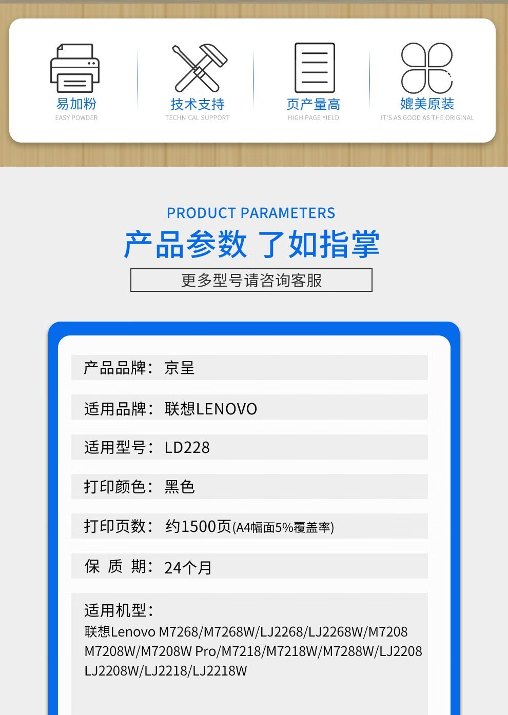 京呈M7268W硒鼓适用联想打印机LT2268墨粉盒LJ2268W LD228 M7208M7218/支 LD228碳粉/1瓶装 含芯片