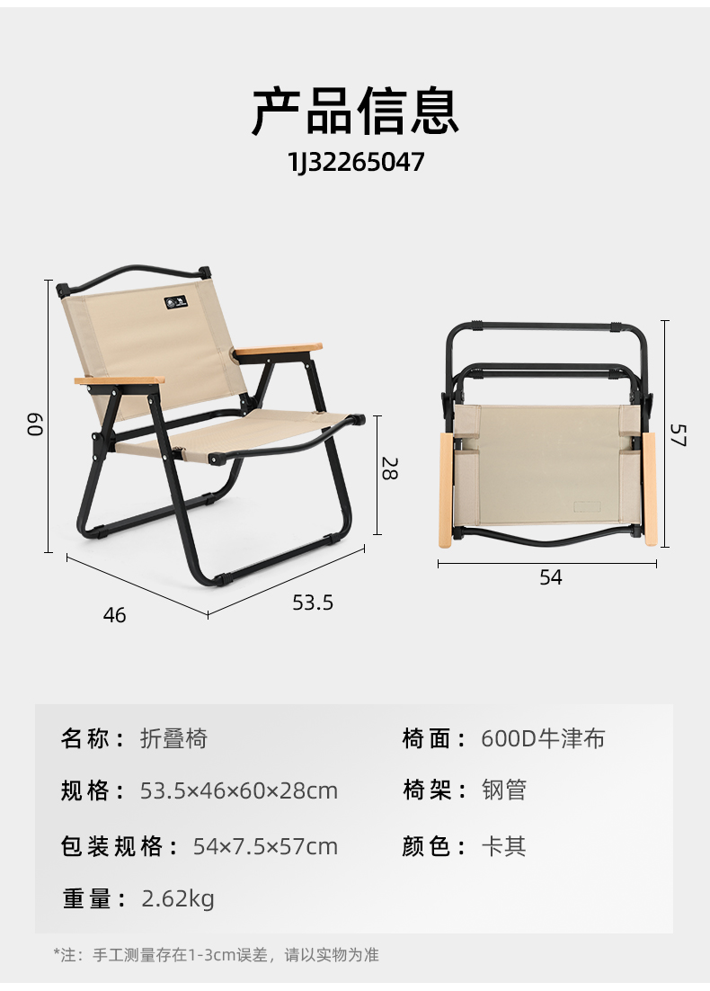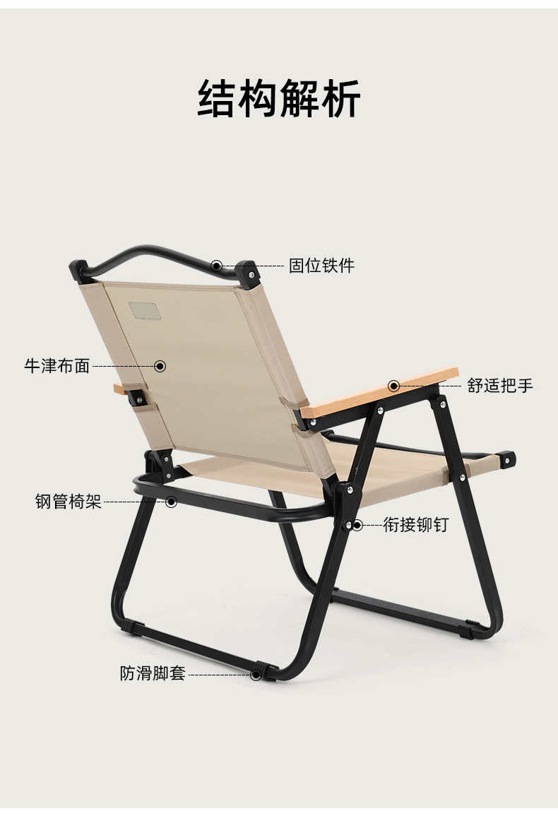 骆驼(CAMEL)户外露营阳台休闲钓鱼野营野餐超轻便携克米特折叠椅 1J32265047 卡其色