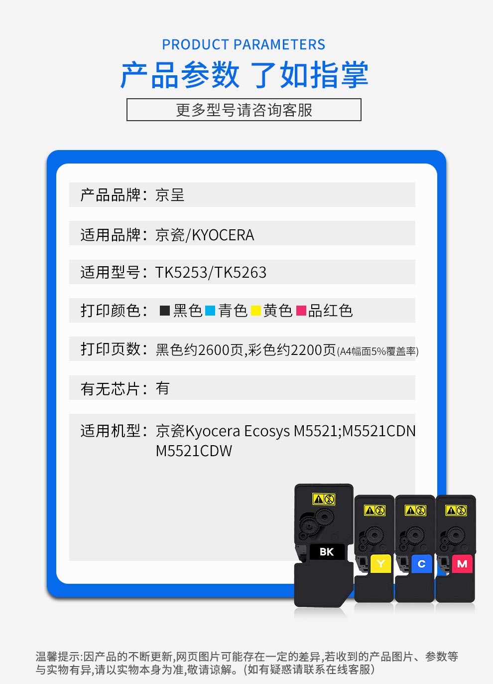 京呈 TK5263墨盒四色套装 碳粉+芯片 9200页 适用京瓷M5521CDW/CDN(单位:套) 四色套装 碳粉+芯片