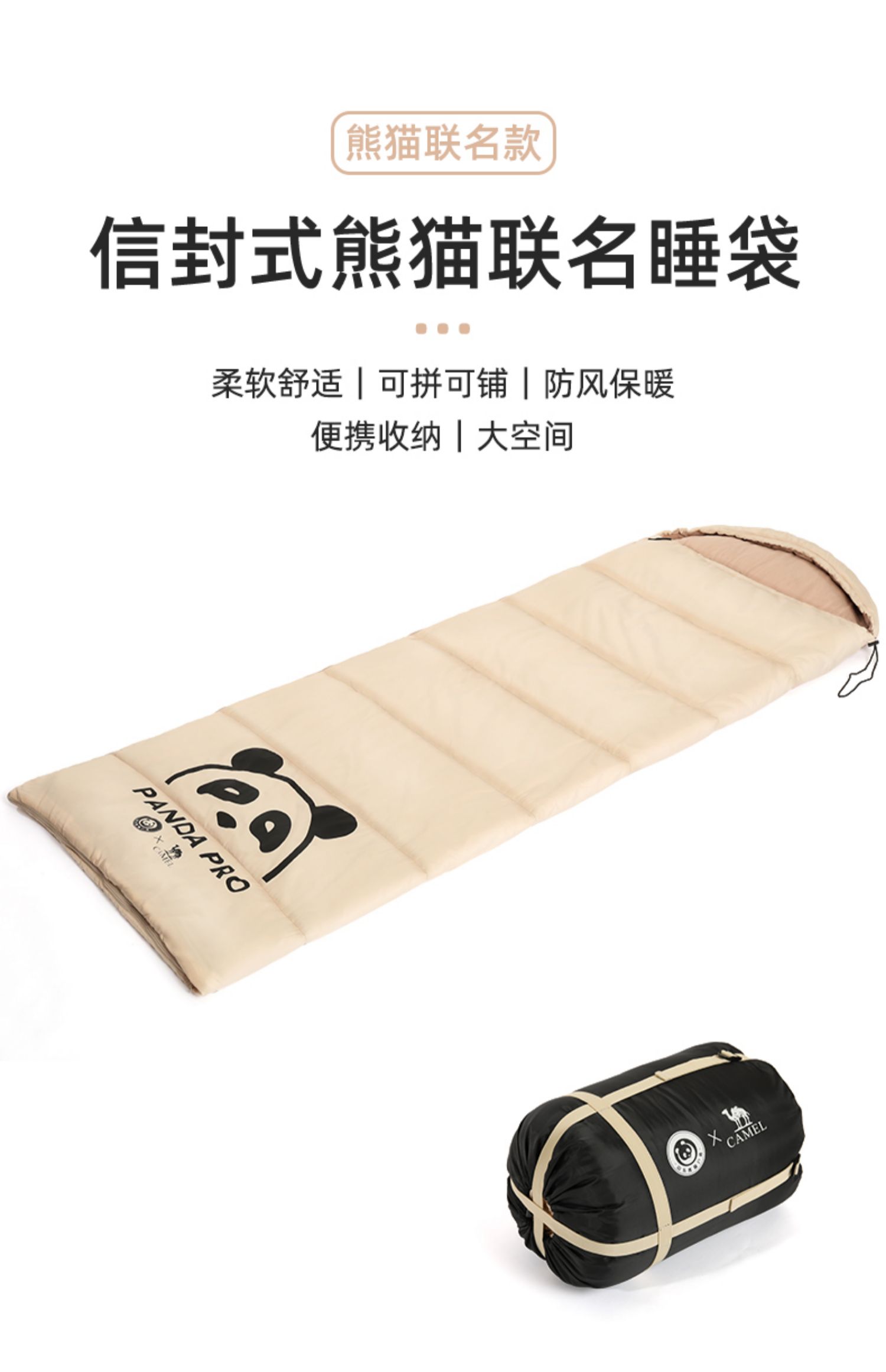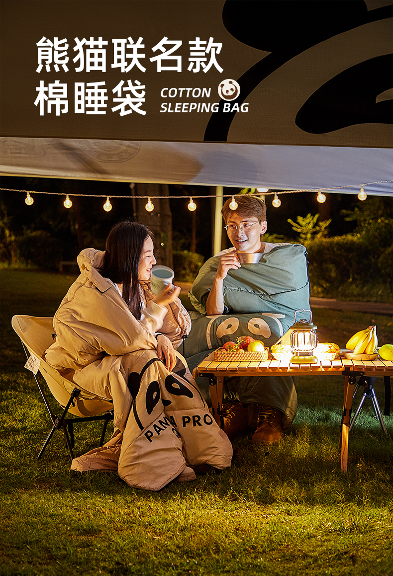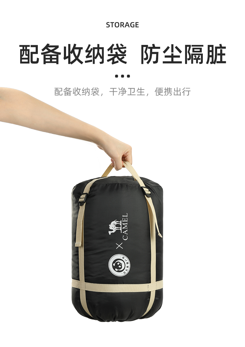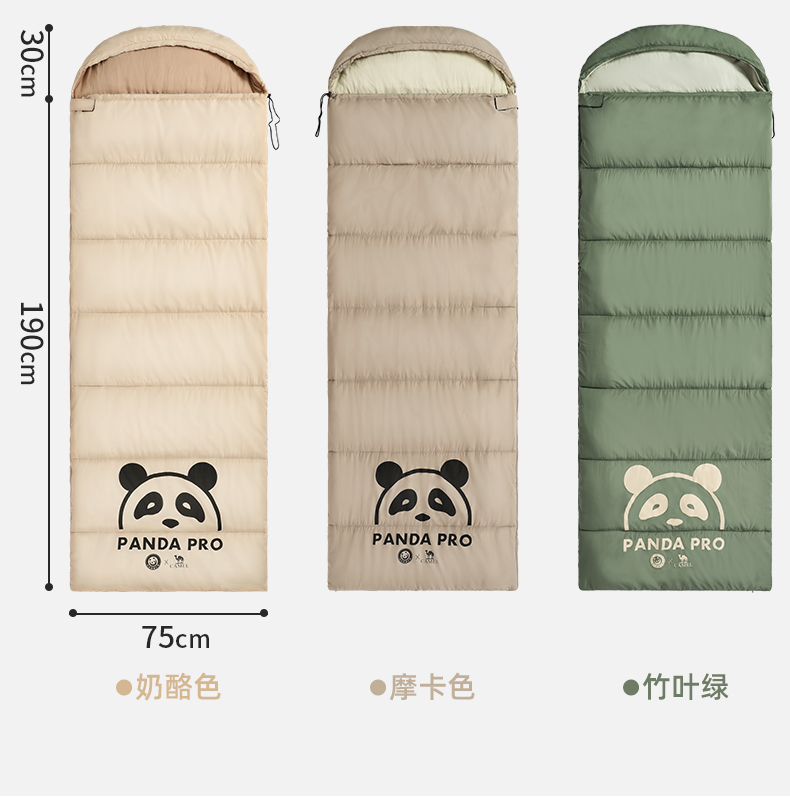 【熊猫联名款】骆驼户外露营睡袋大人成人隔脏保暖春季加厚防寒被1J32265426-1 单位:个 竹叶绿-右
