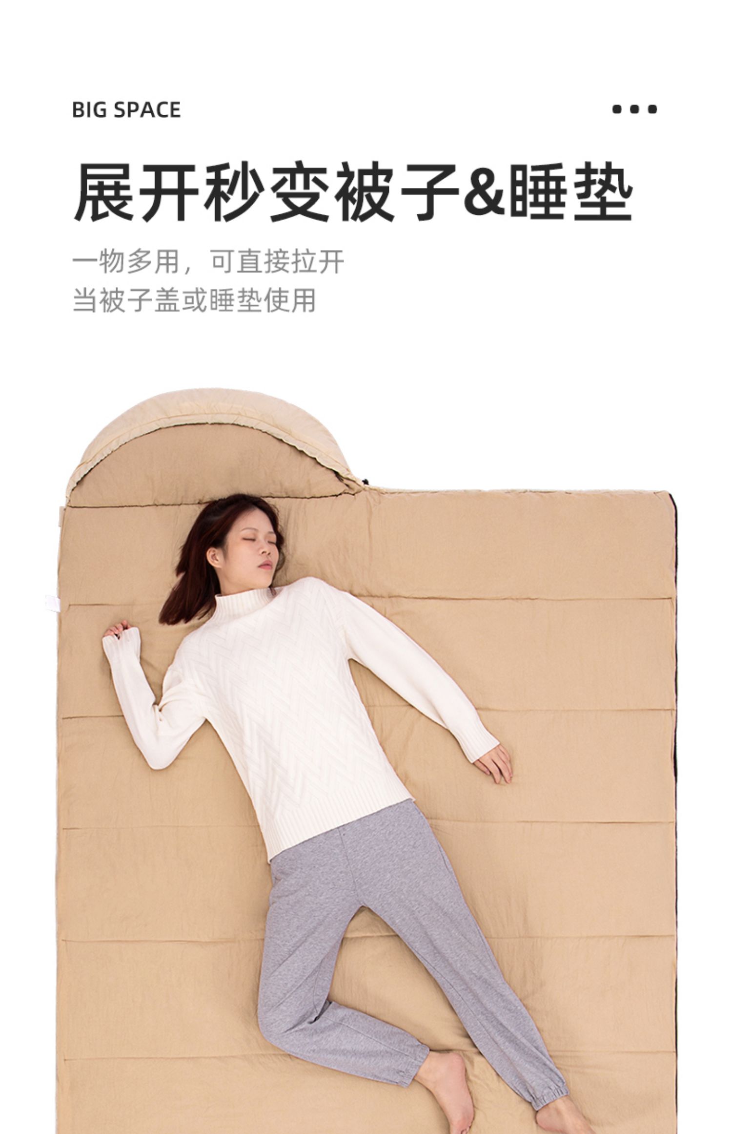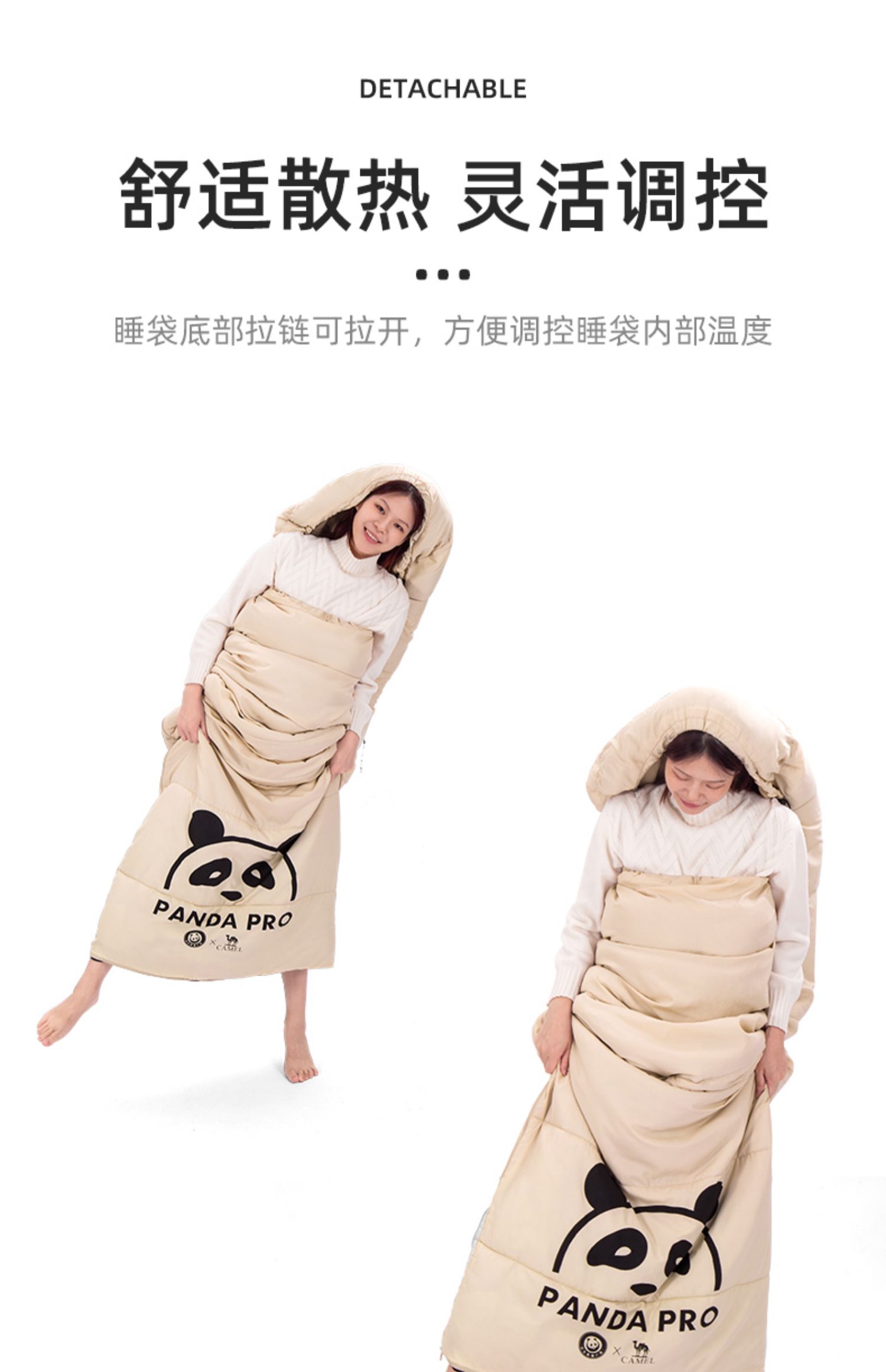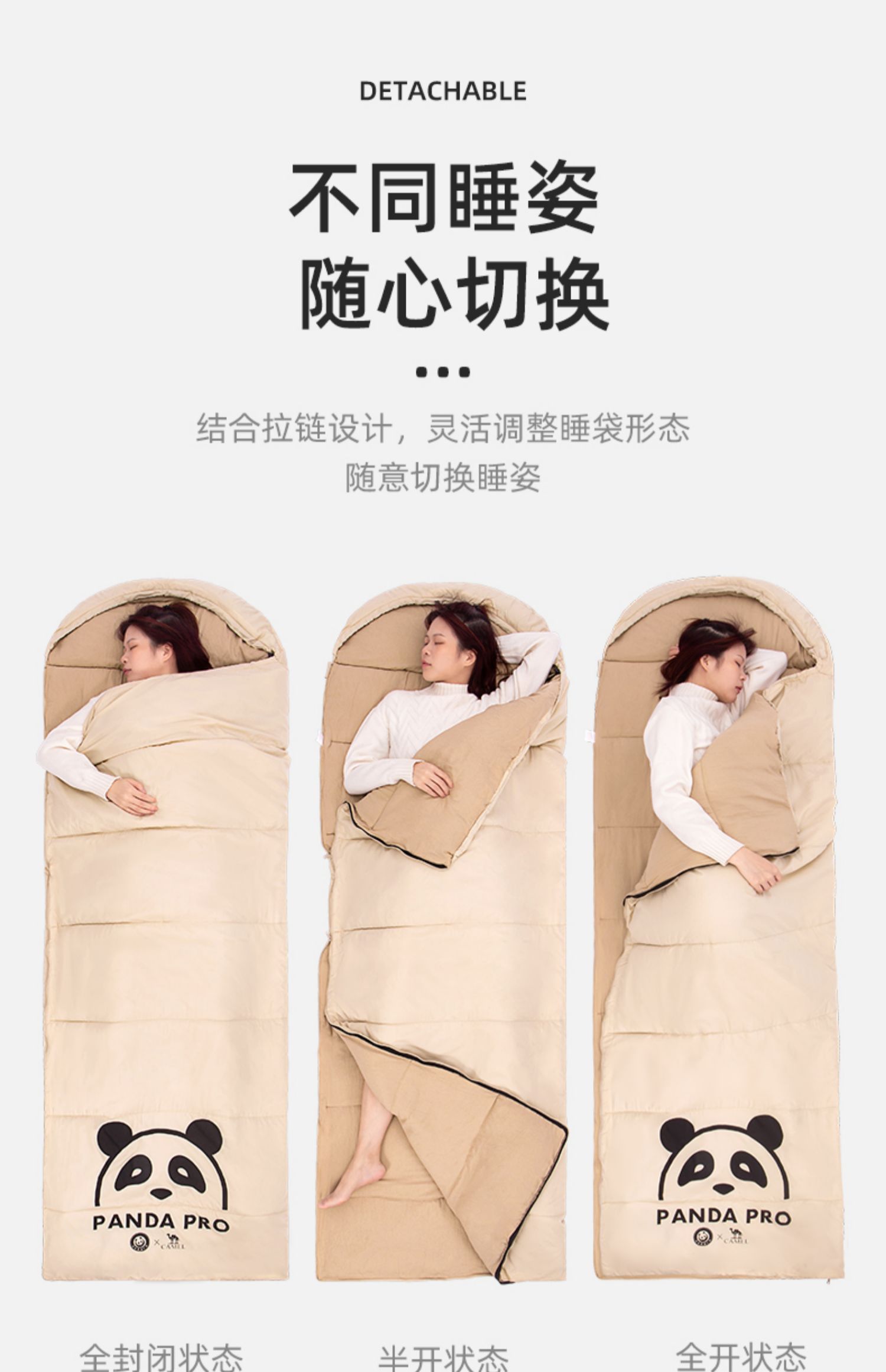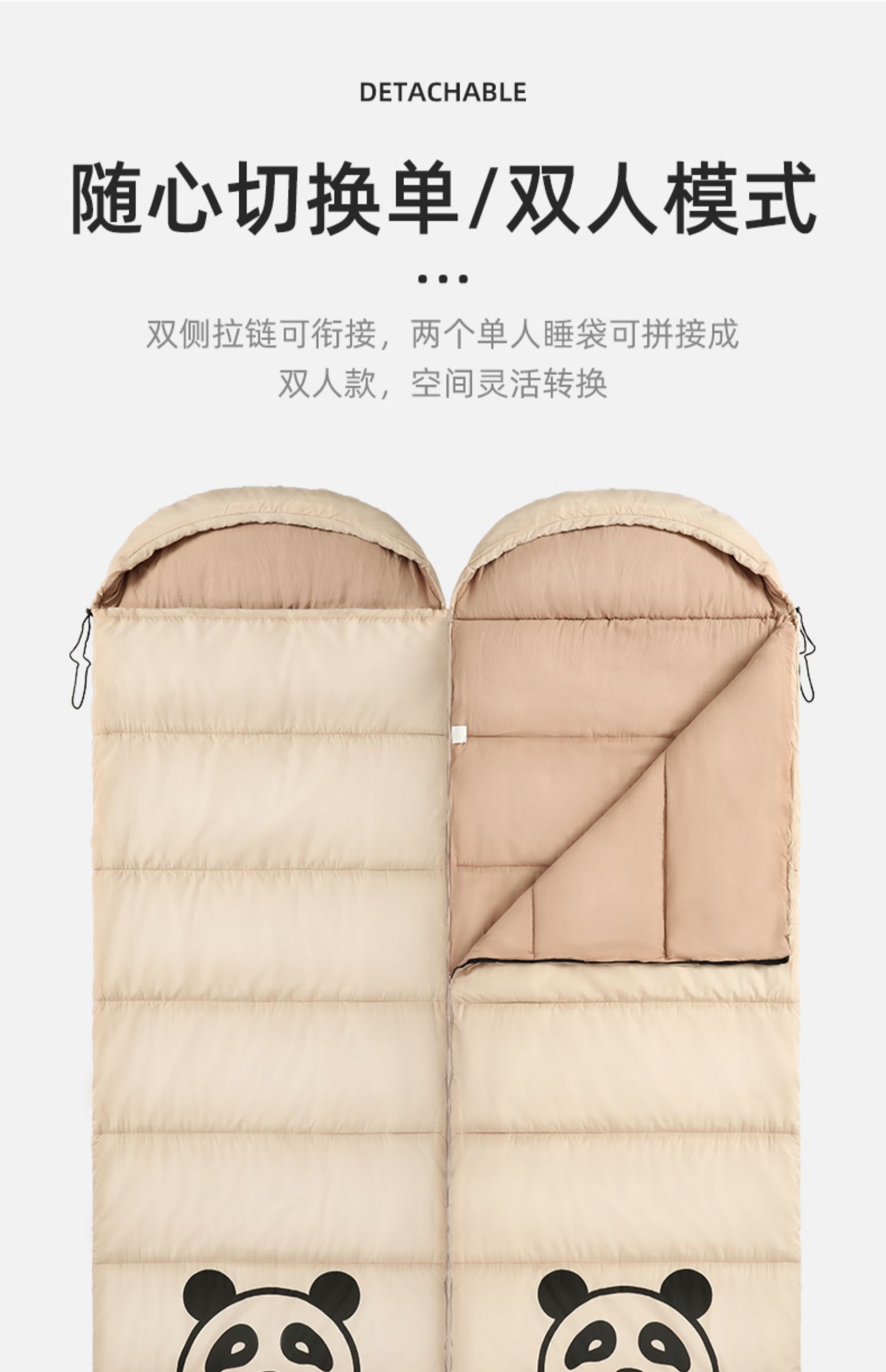【熊猫联名款】骆驼户外露营睡袋大人成人隔脏保暖春季加厚防寒被1J32265426-1 单位:个 竹叶绿-右