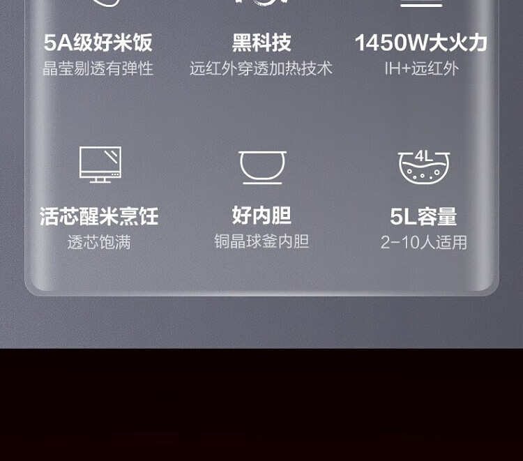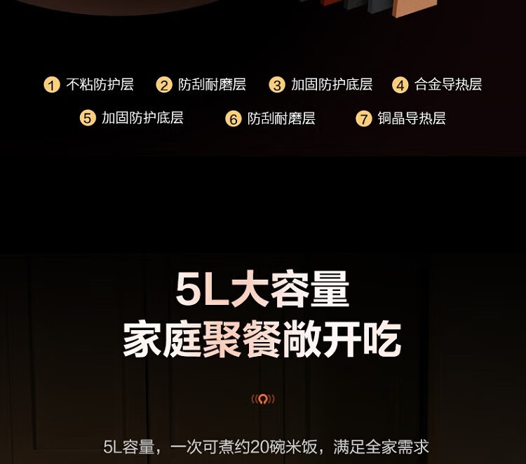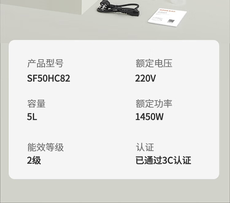 苏泊尔(SUPOR)ZMD安心系列 远红外穿透加热 IH电磁加热 5L电饭煲SF50HC82