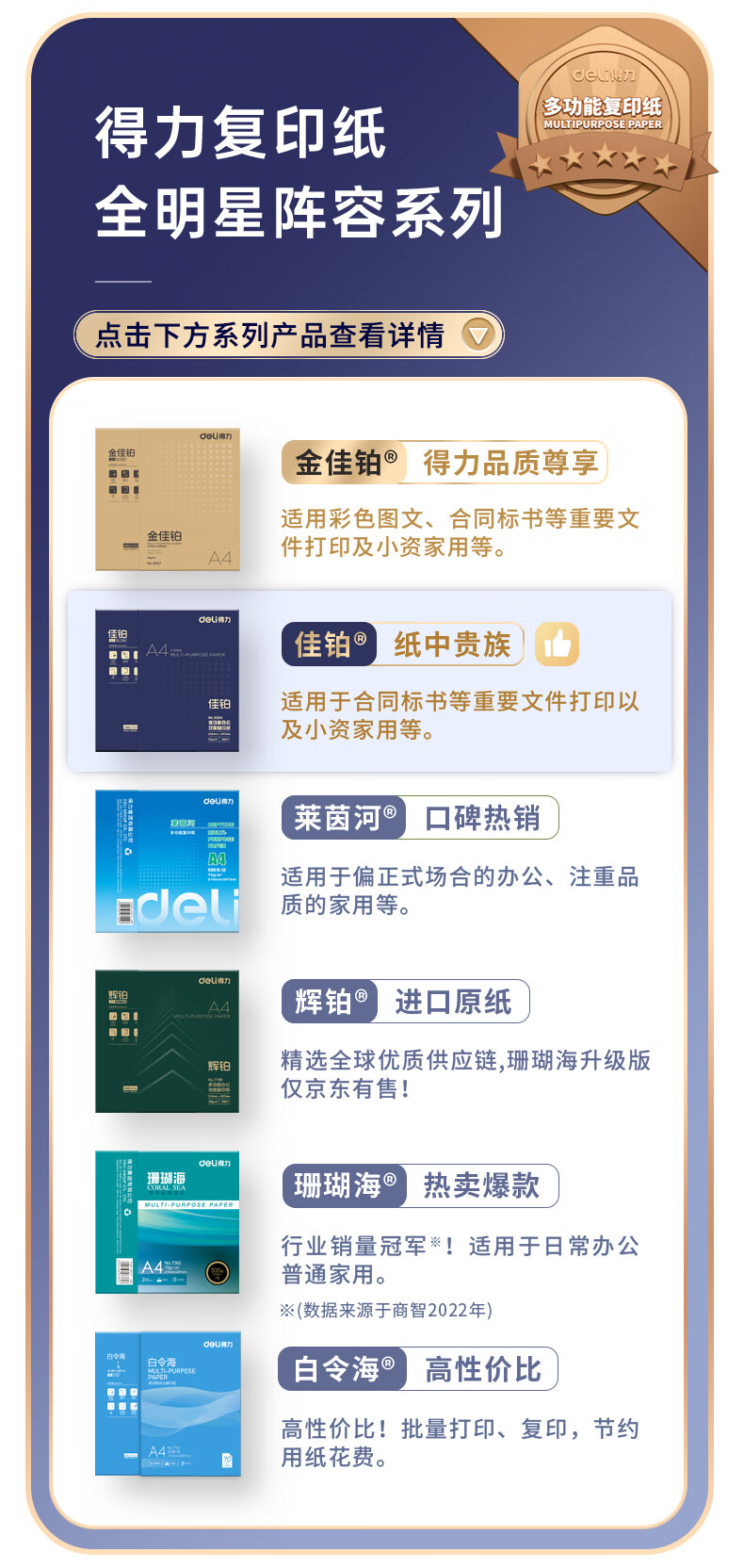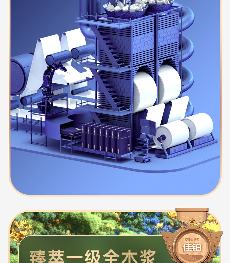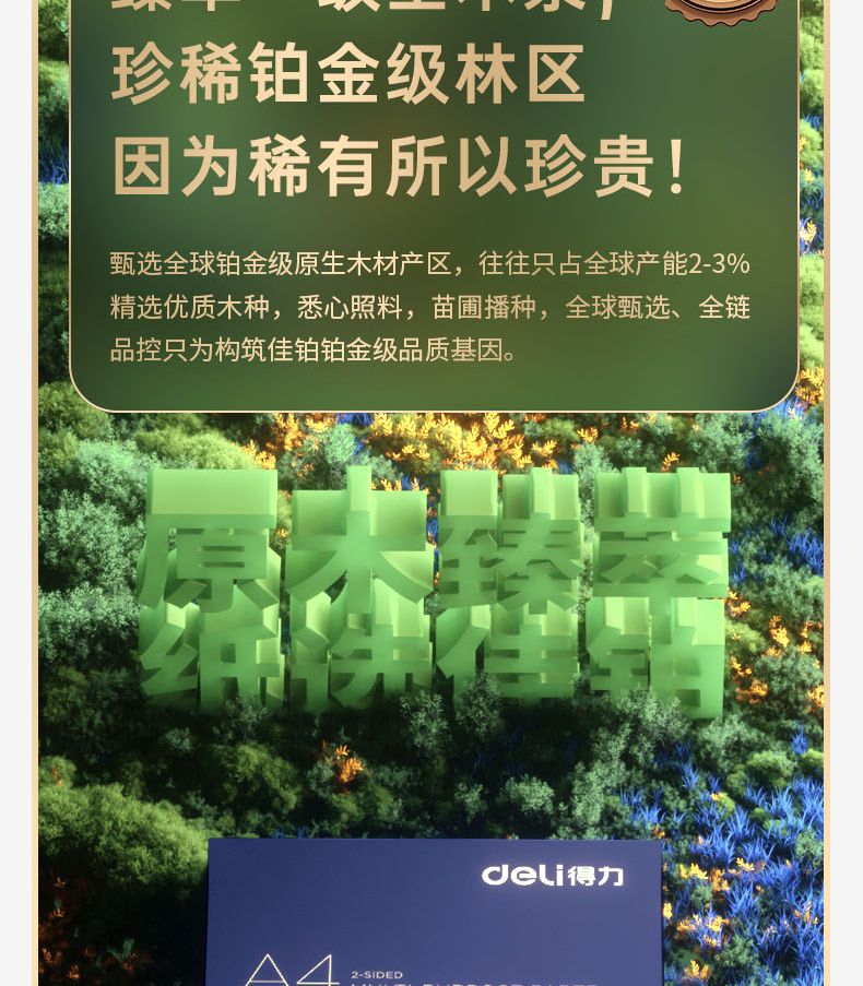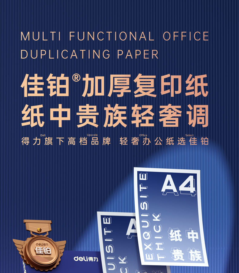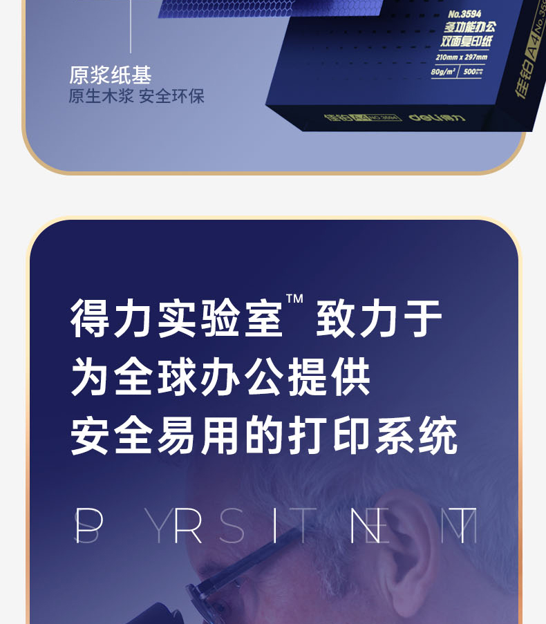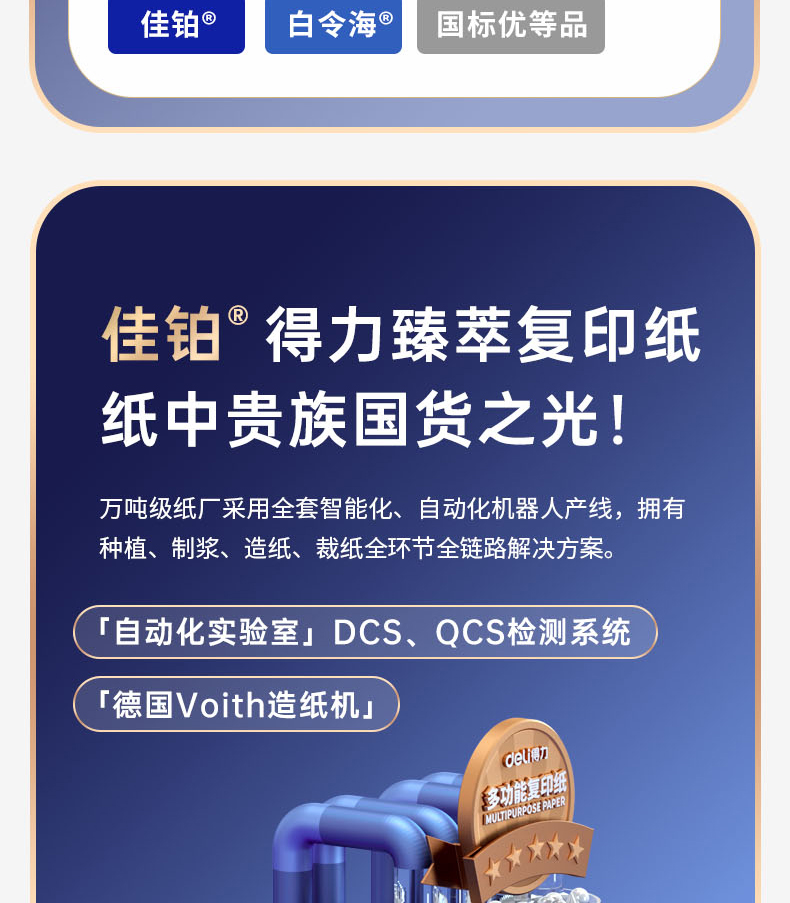 得力(deli)佳铂A4打印纸 80g克500张*5包一箱 高档加厚复印纸 合同标书彩打纸 3595 5包一箱 整箱2500张 白色