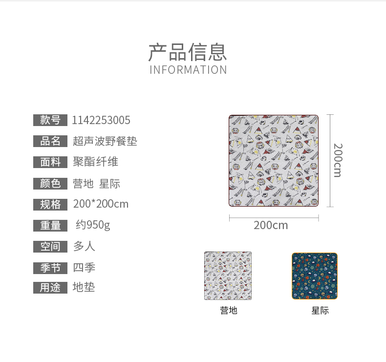 骆驼(CAMEL)户外露营春游野炊草坪加厚防潮野餐垫 1142253005 张 星际(混色)