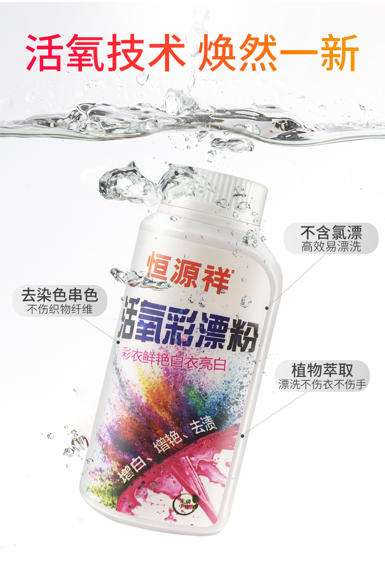 恒源祥活氧彩漂粉250g 瓶 钢琴白