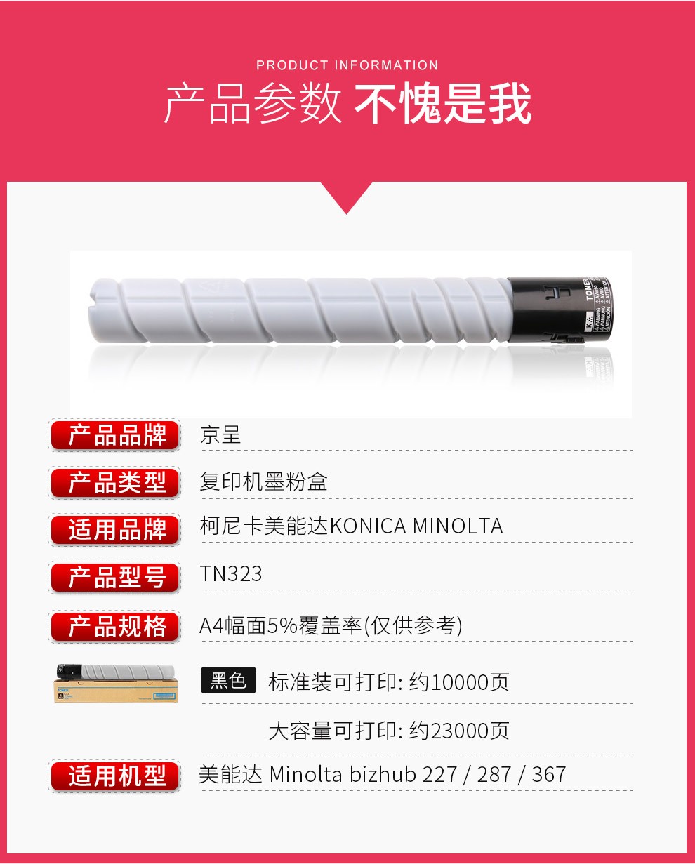 京呈 TN323高容粉盒 23000页 适用柯尼卡美能达TN323粉盒227 287 (单位:支) TN323高容粉盒 约23000页